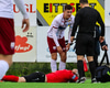 Það er ennþá verið að hlúa að Arnóri. Þetta hefur ekki verið þægilegt. Fast skot af stuttu færi.