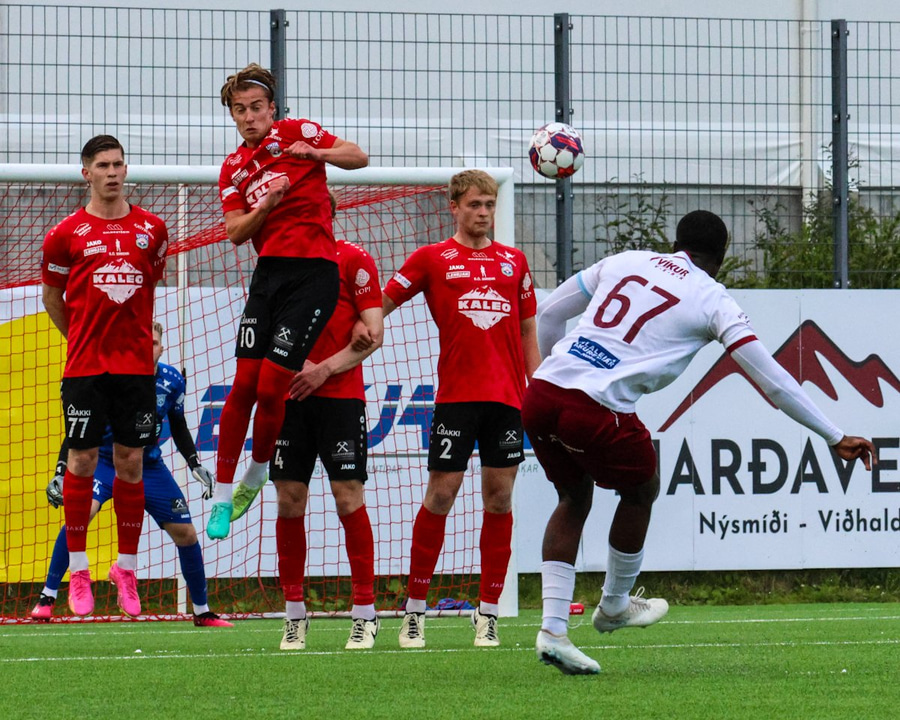 Leiknismenn að fá aukaspyrnu á stórhættulegum stað