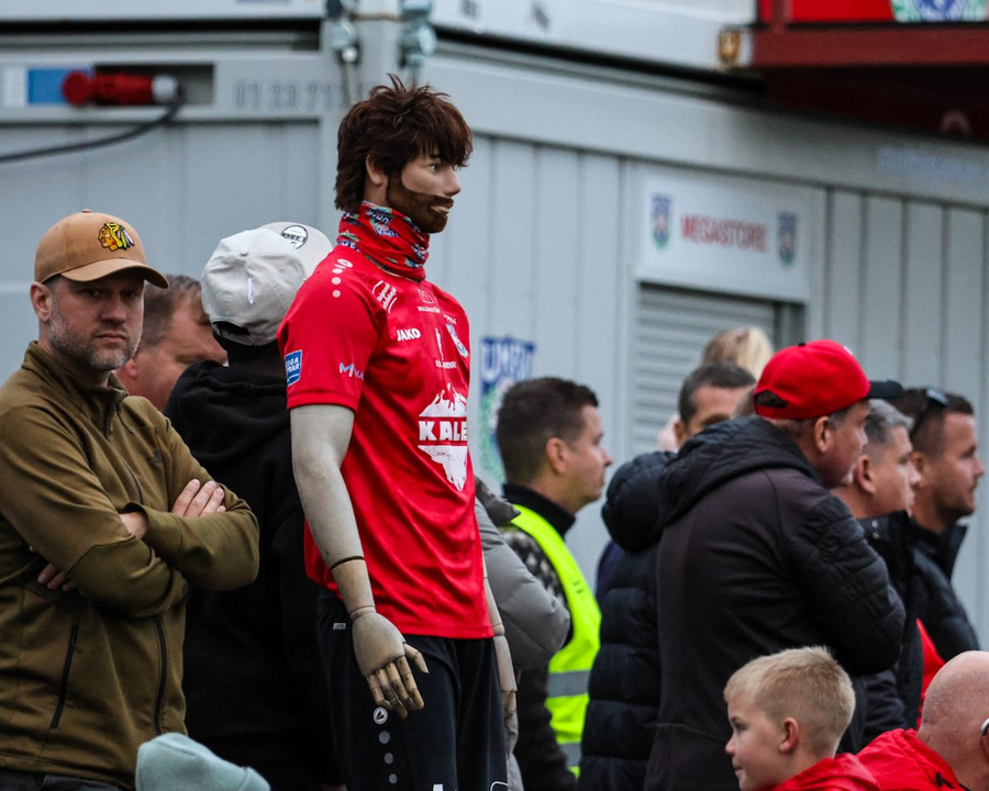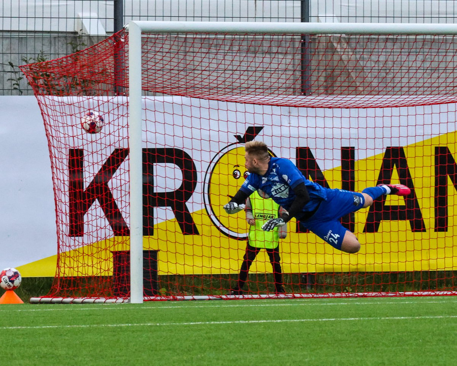 Aron Jóh tekur aukaspyrnuna sem er á leið í samskeytin en Viktor skutlaði sér eins og köttur upp í hornið og varði. Stórbrotin varsla!