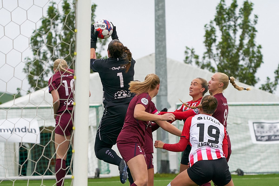 Rhodes skoraði örugglega úr vítinu, María Eva braut á Jordyn Rhodes inn í teig þróttara.