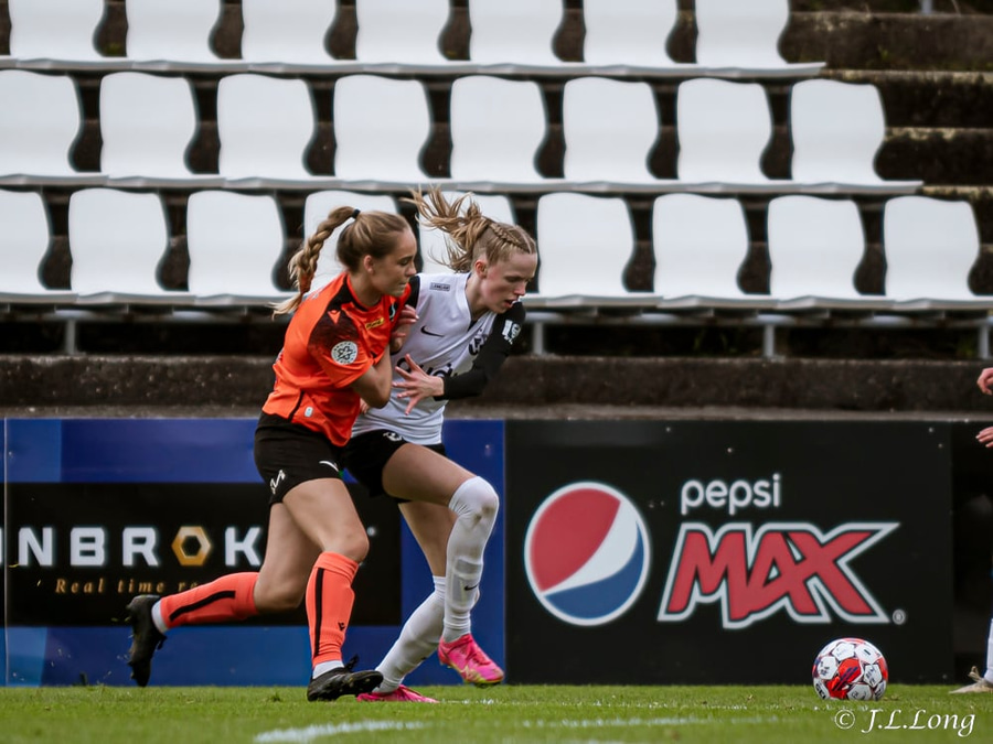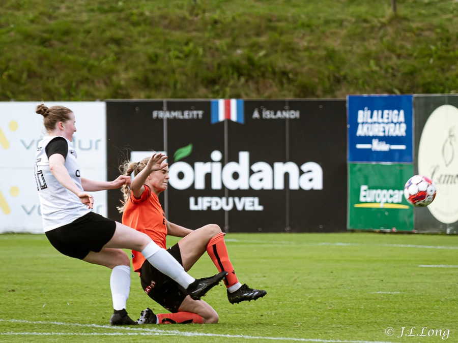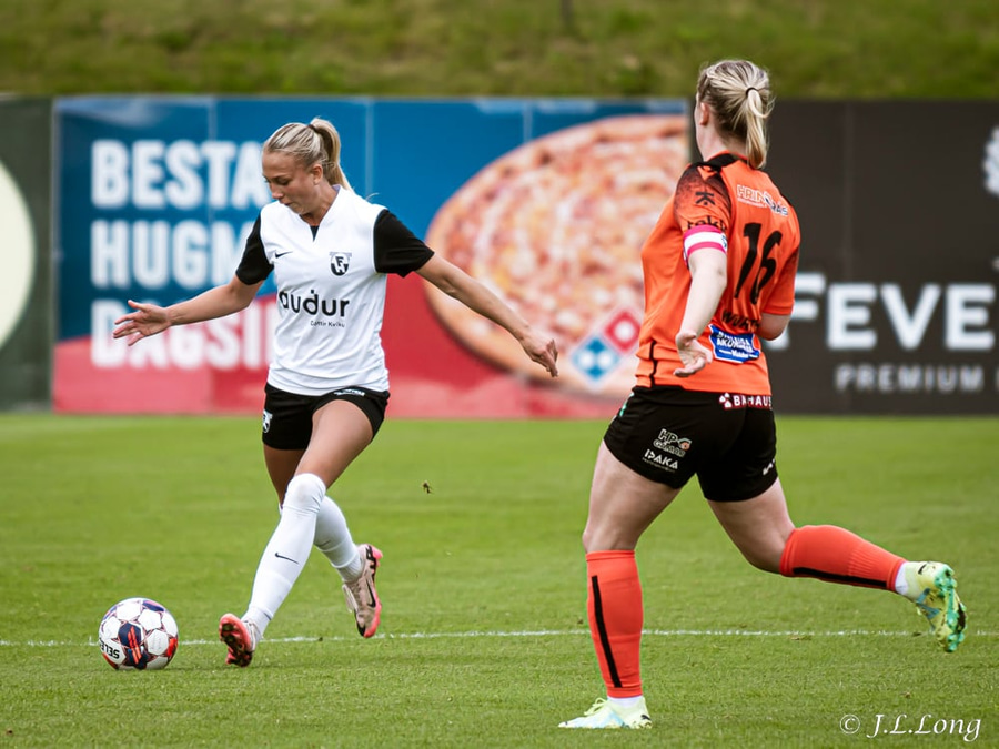 Snædís María Jörundsdóttir skoraði í sitthvorum hálfleiknm og Hildigunnur Ýr Benediktsdóttir bætti við þriðja markinu.