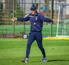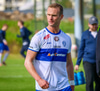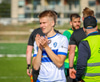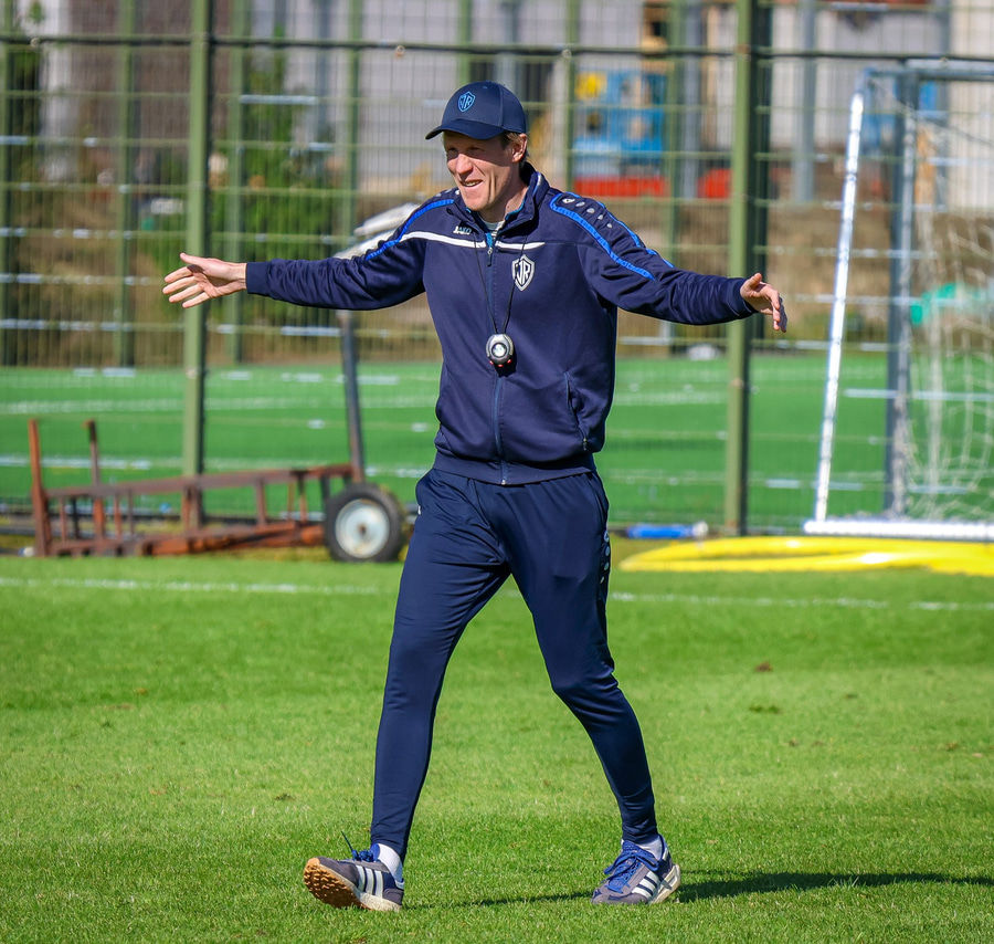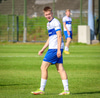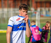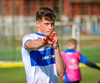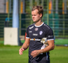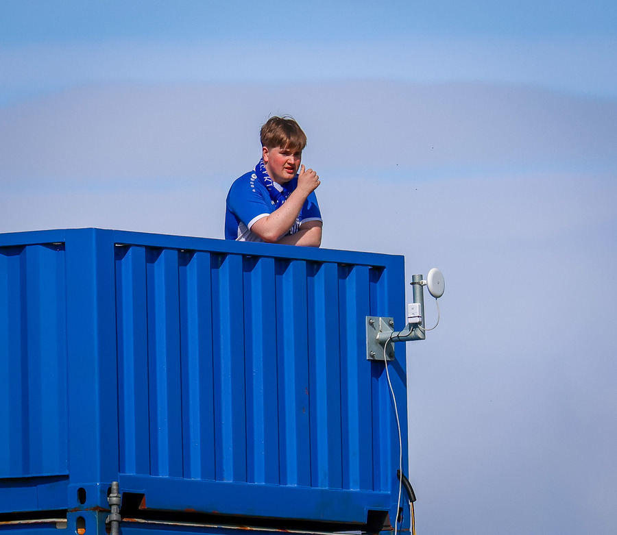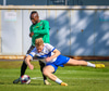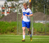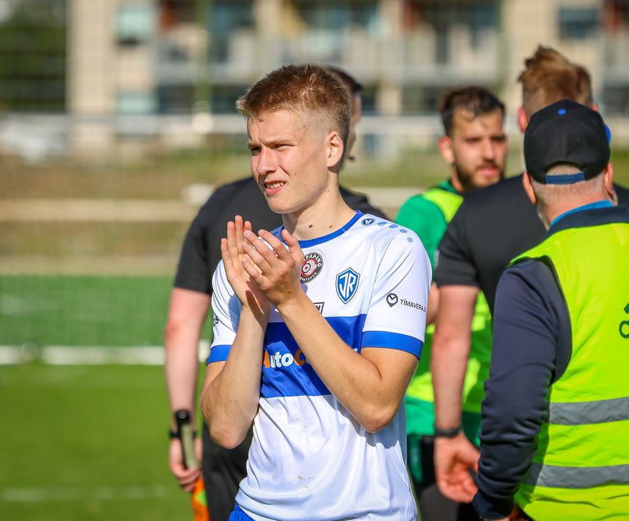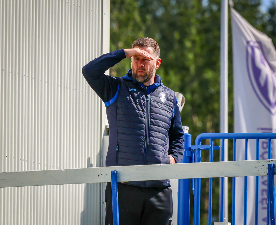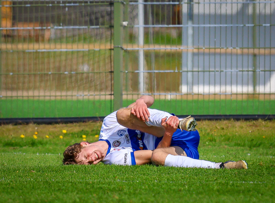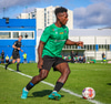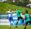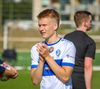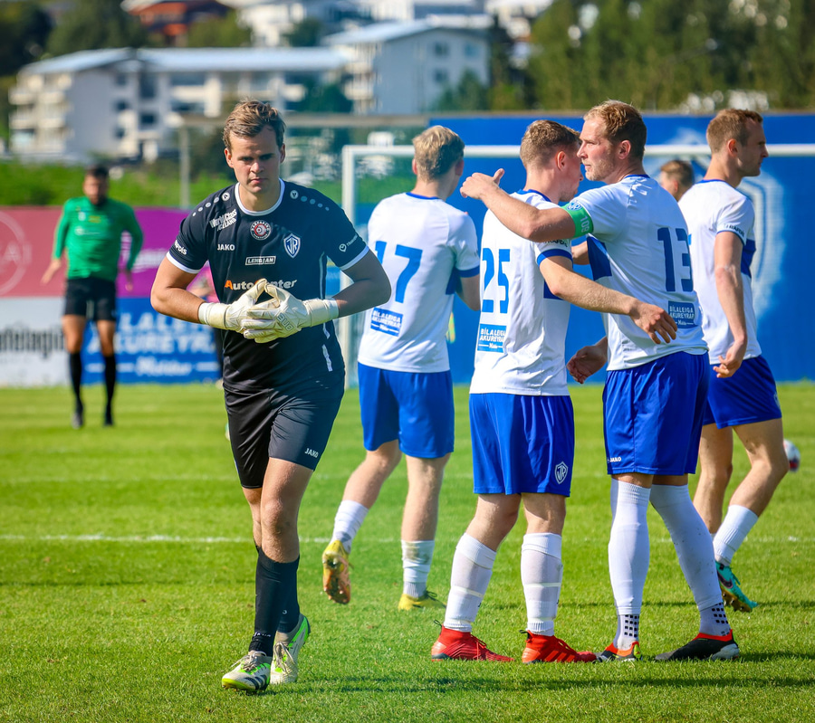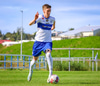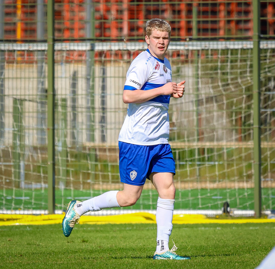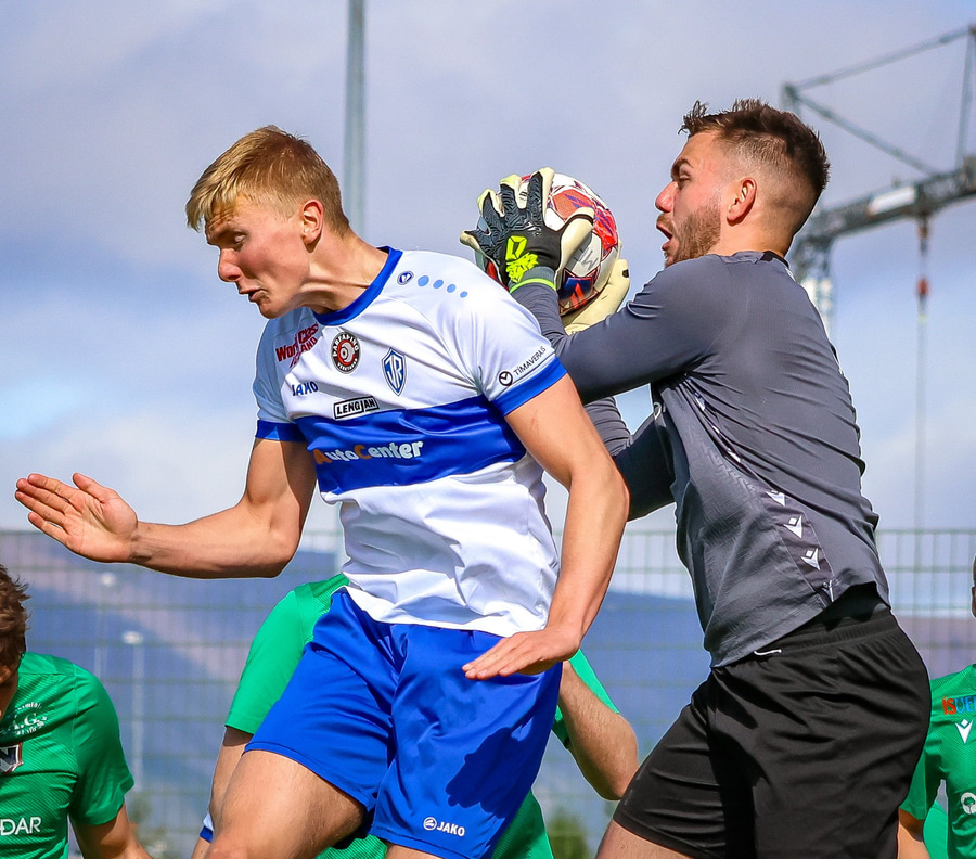 Boltinn berst til Oumar sem er aleinn efst í teignum. Vilhelm kemur út á móti honum og gerir vel í að gera sig stóran og blokka skotið.
