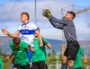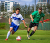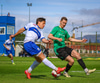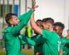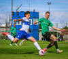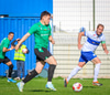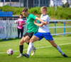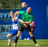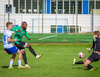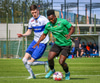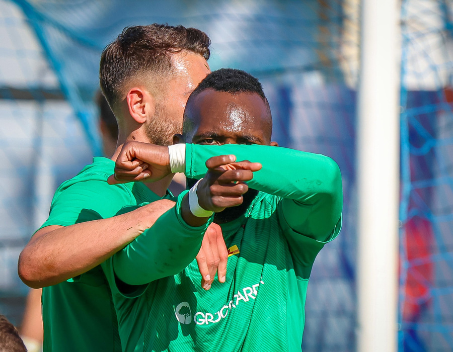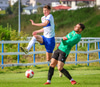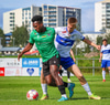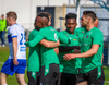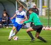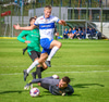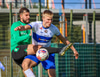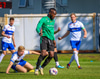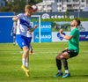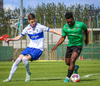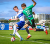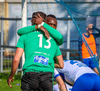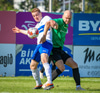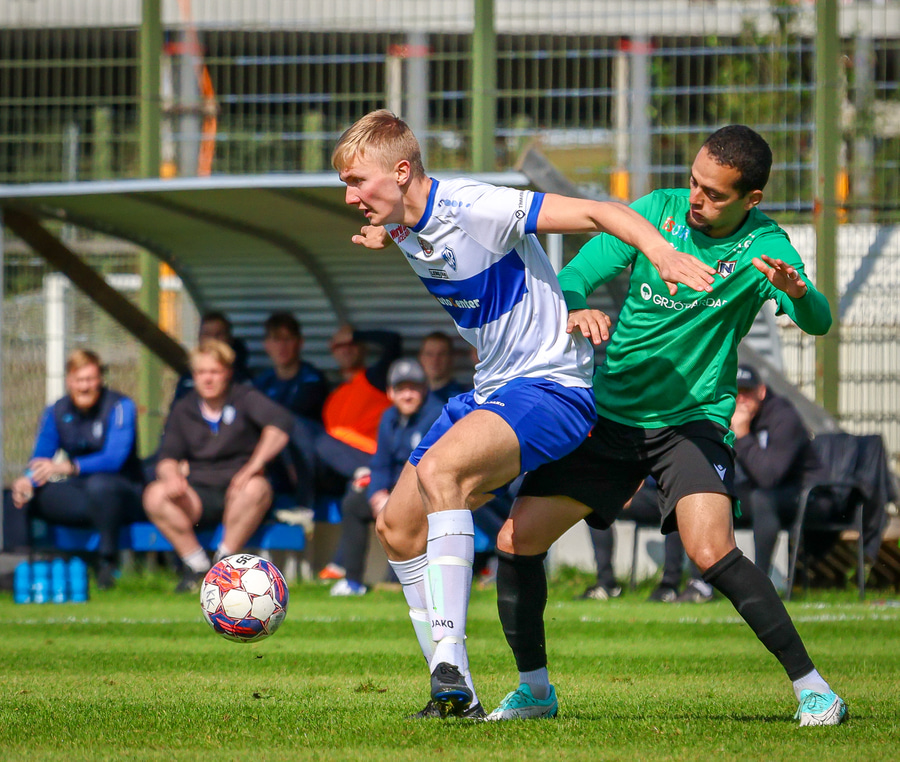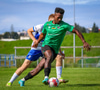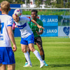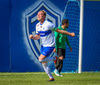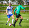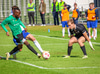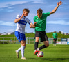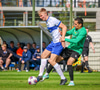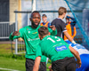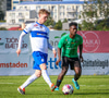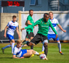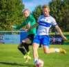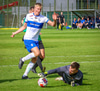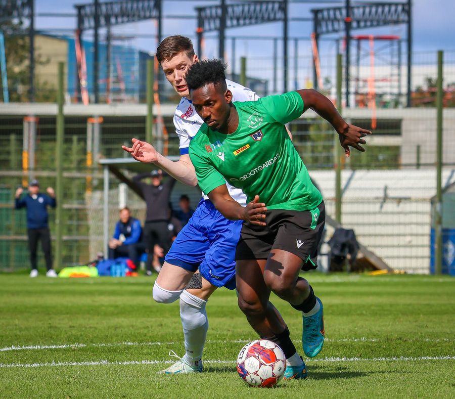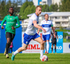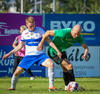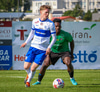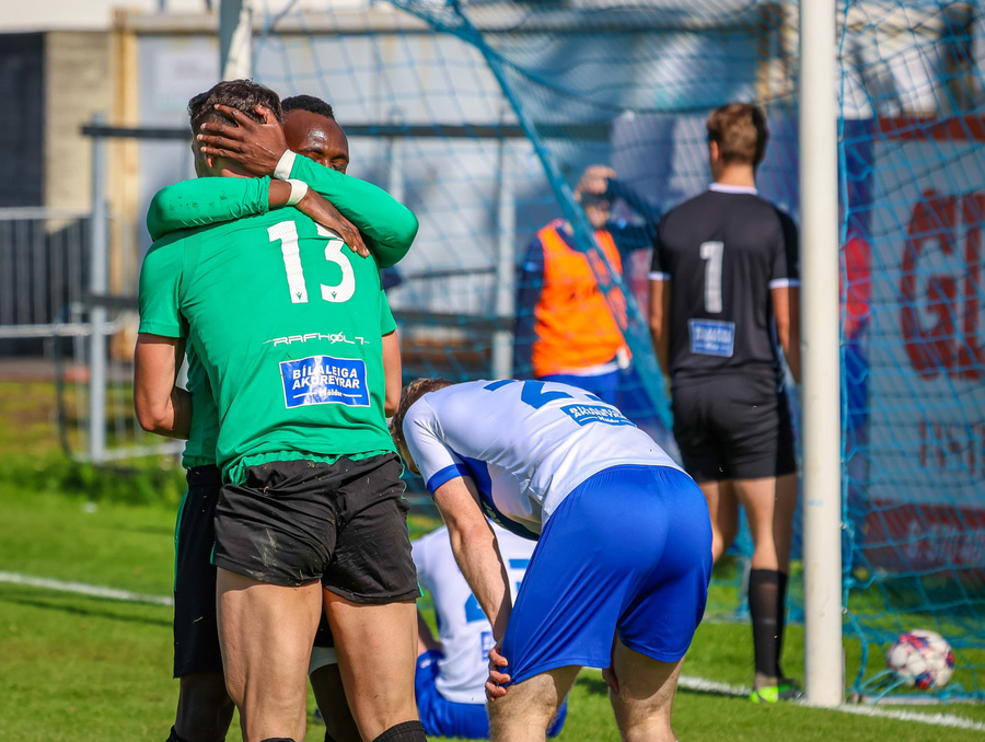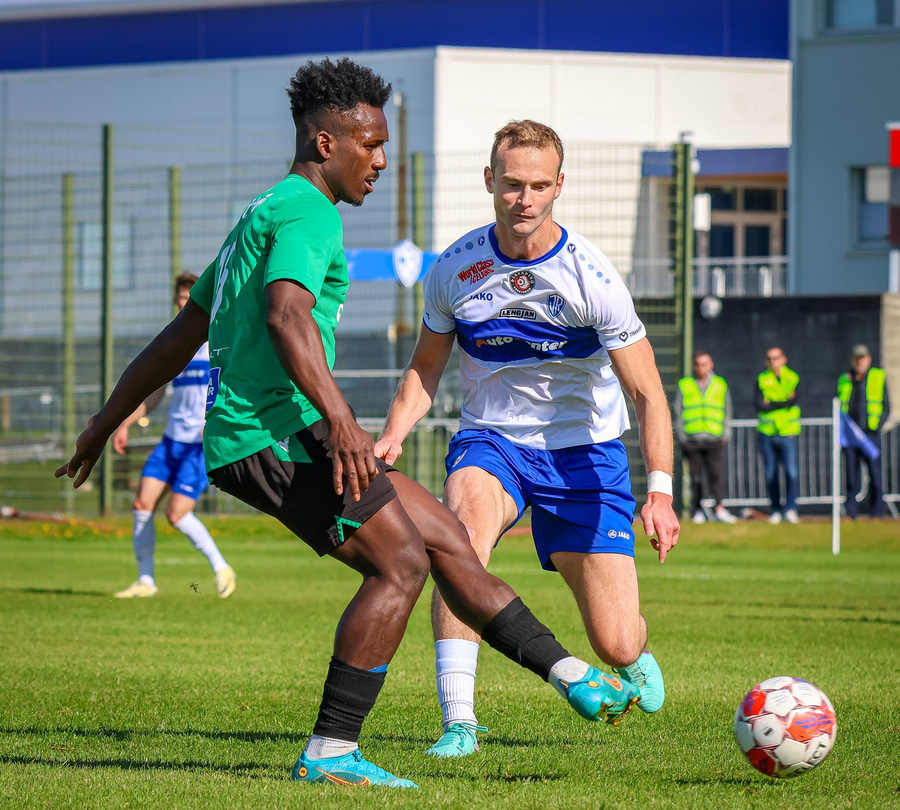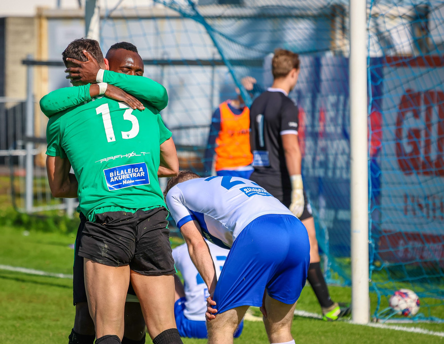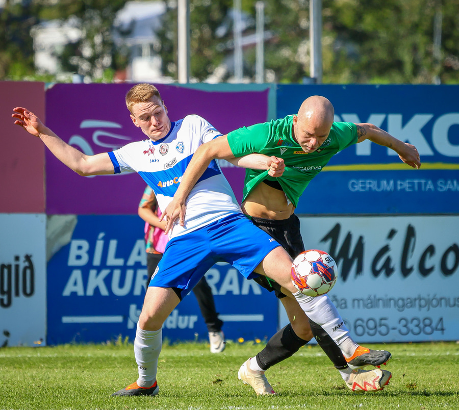 Kenneth kemur boltanum inn í teig á Oumar sem nær að pota boltanum í netið.