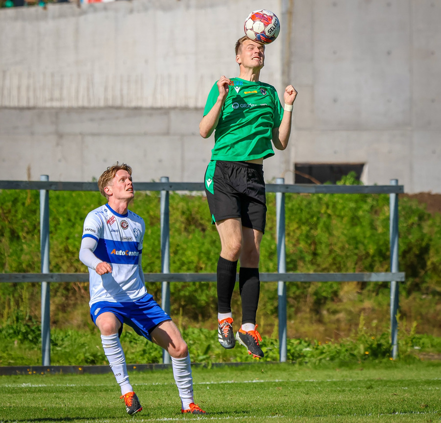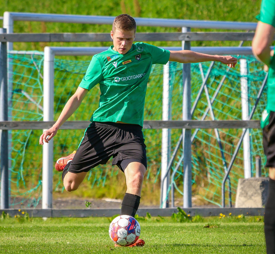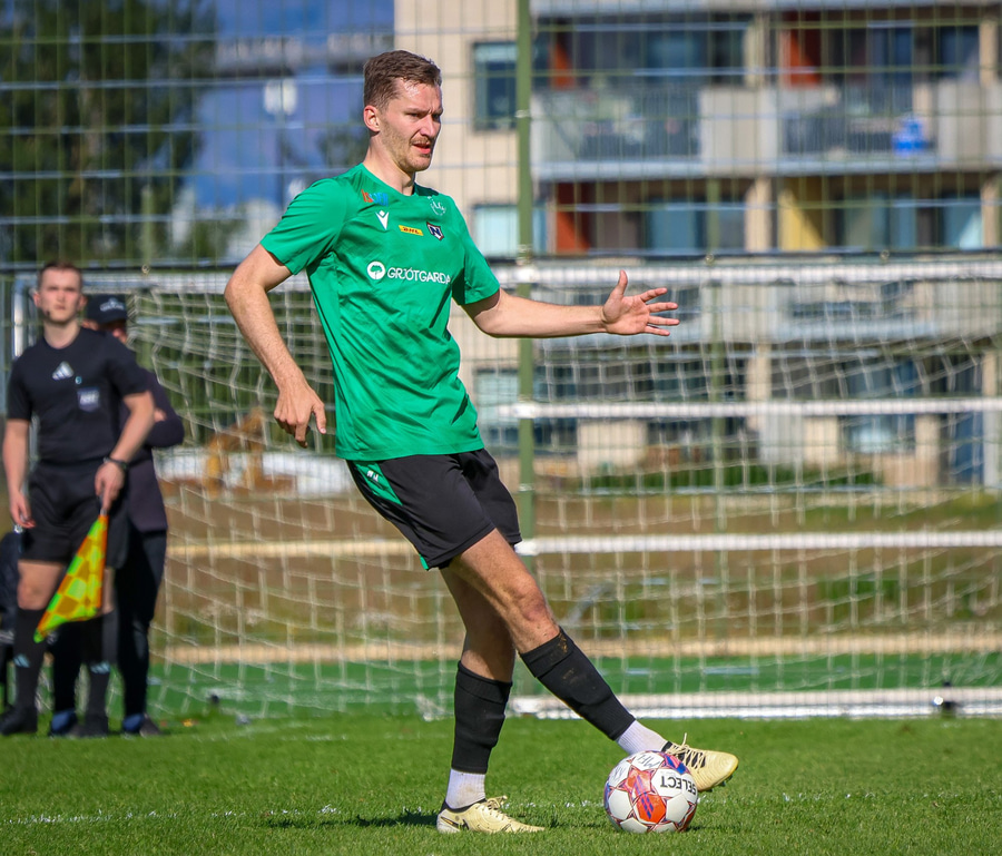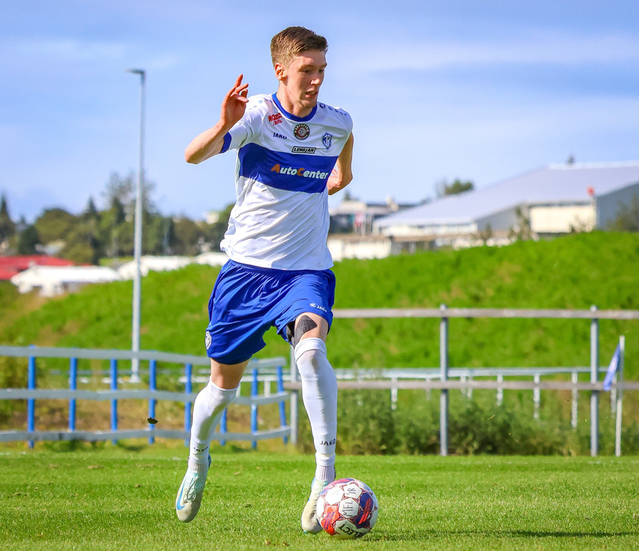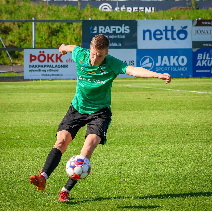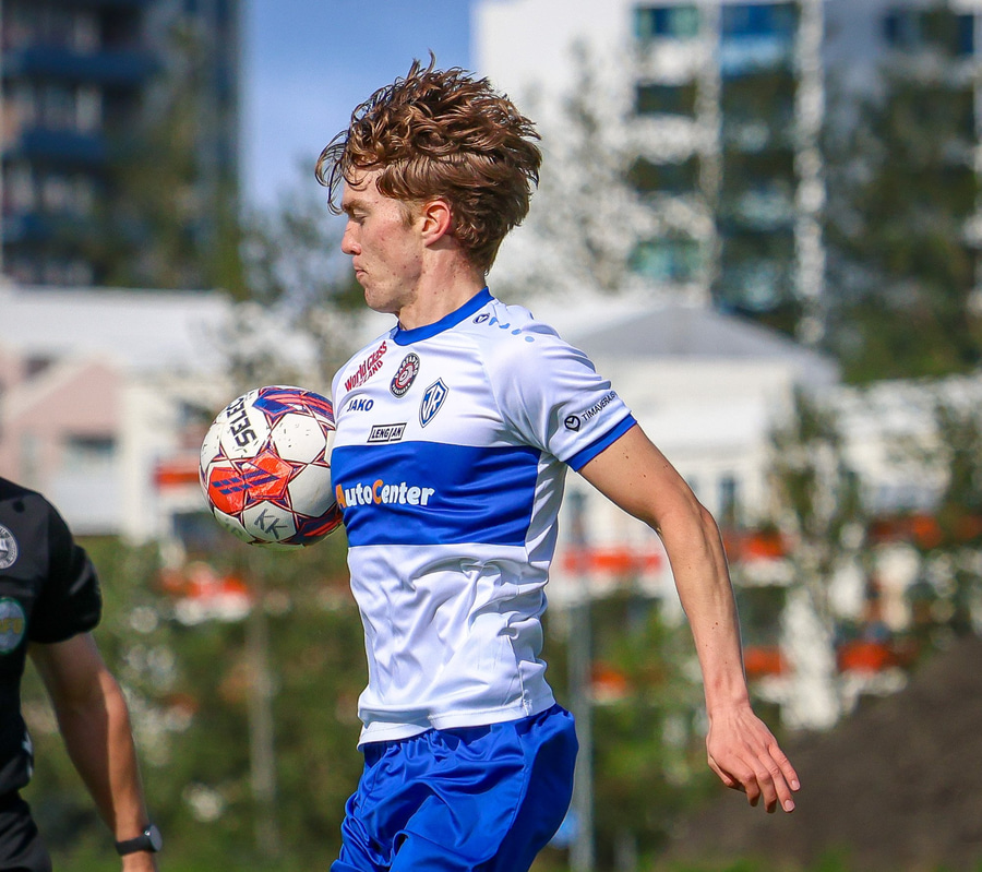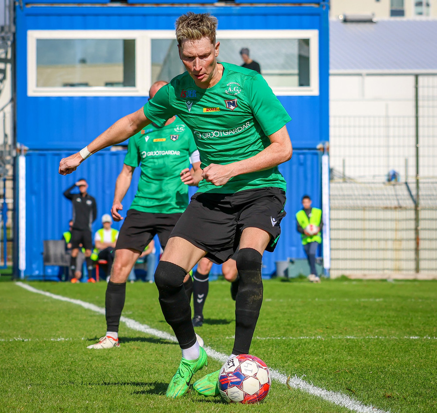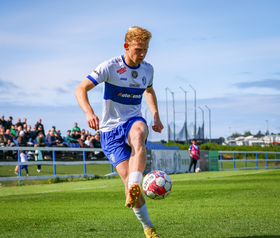 Kenneth á fyrirgjöf af hægri kantinum sem Dominik reynir að kasta sér fyrir en hann rétt missir af botlanum.