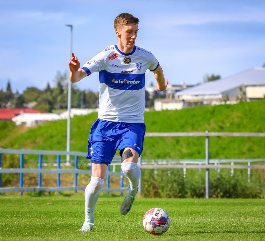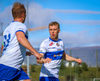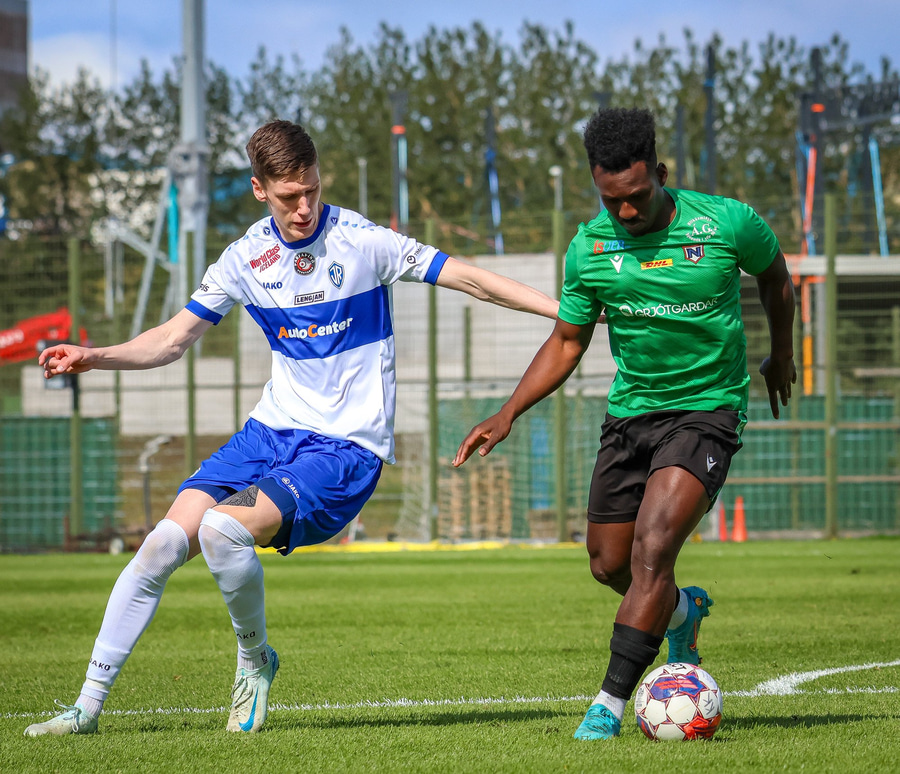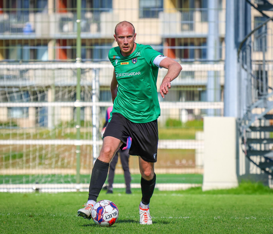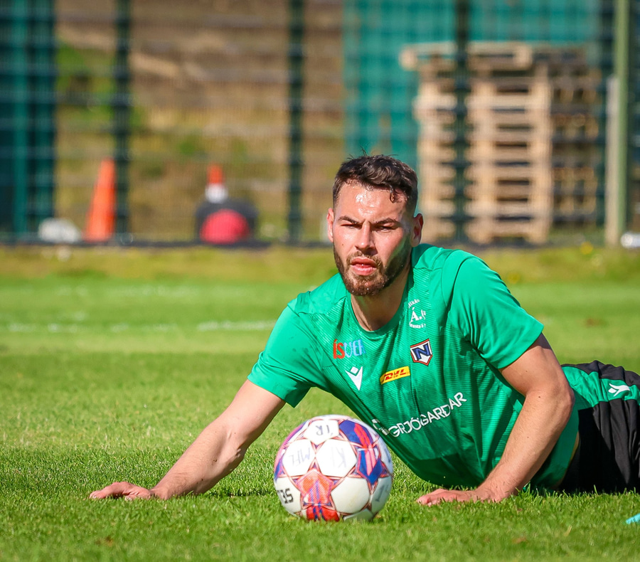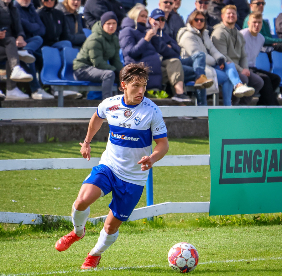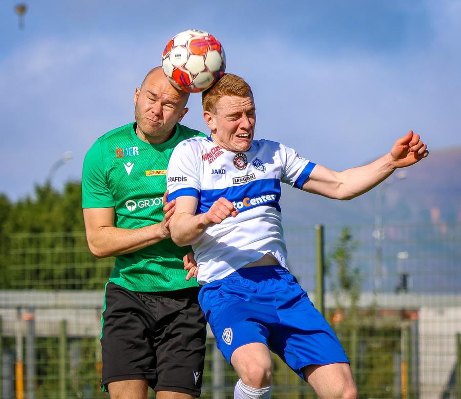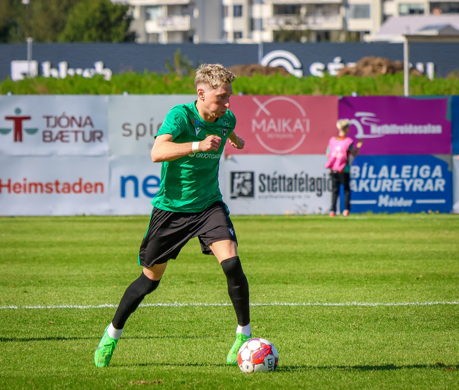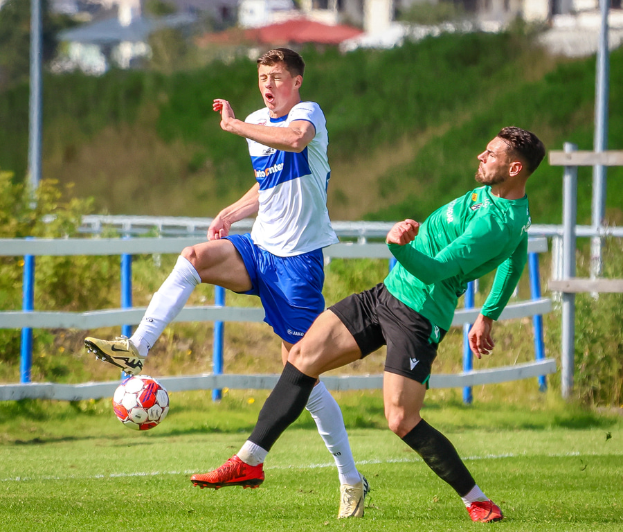 Kenneth á fyrirgjöf af hægri kantinum sem Dominik reynir að kasta sér fyrir en hann rétt missir af botlanum.