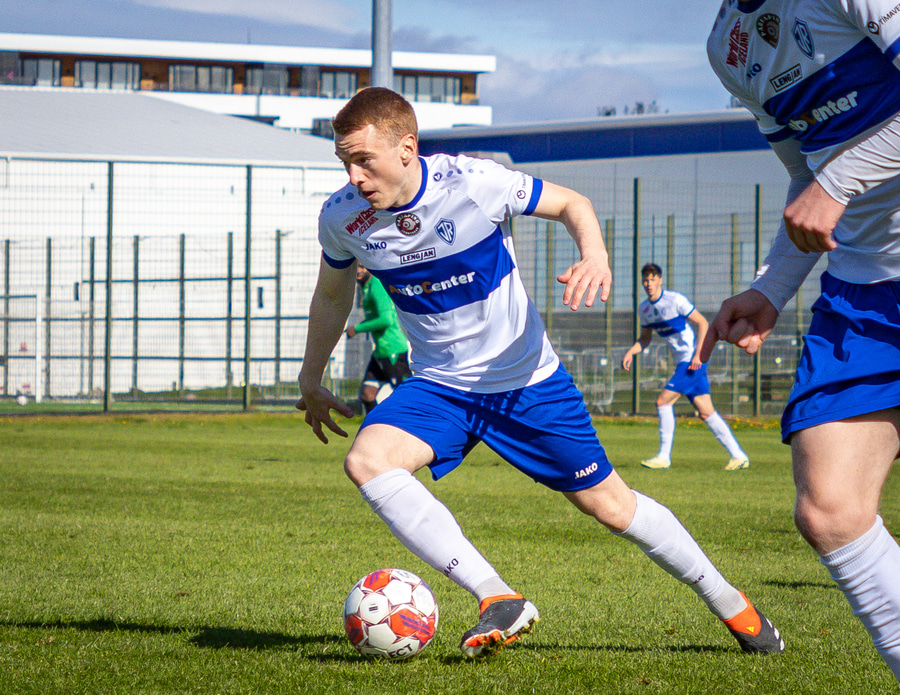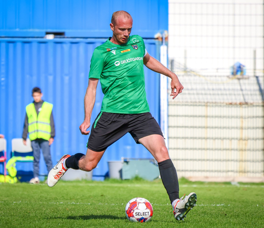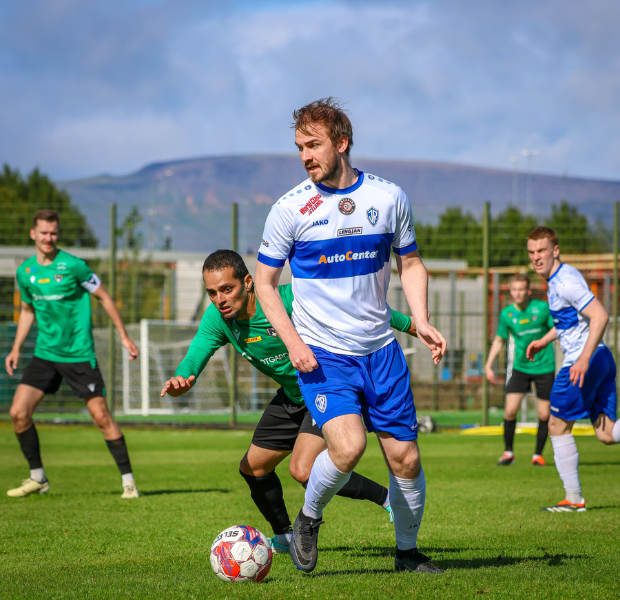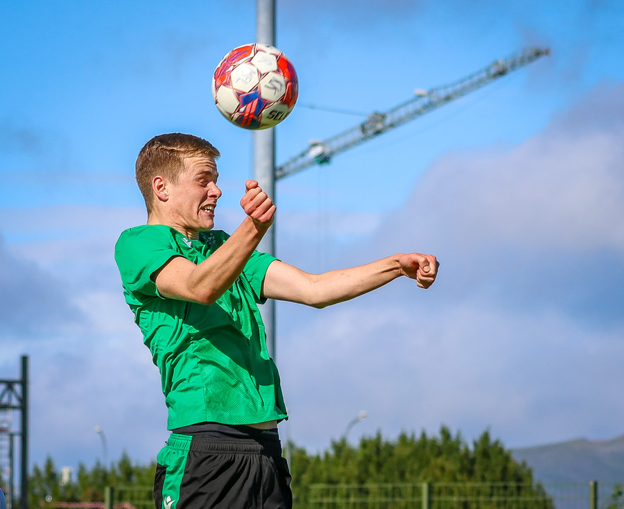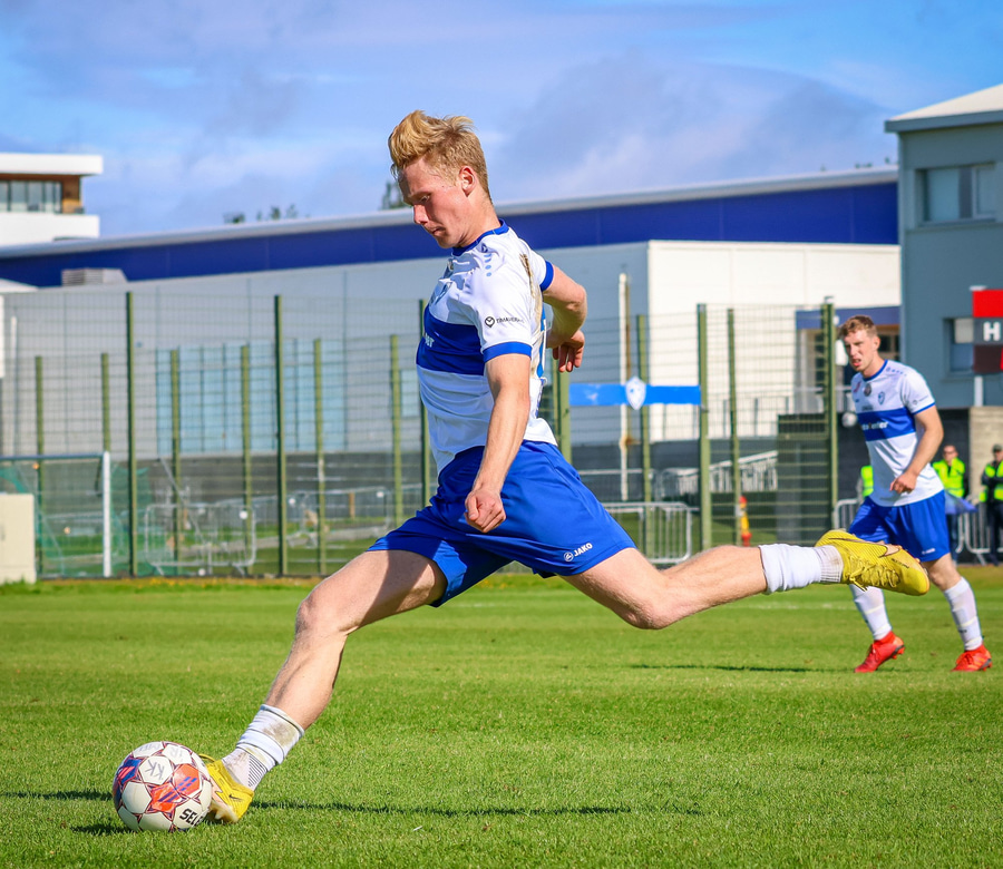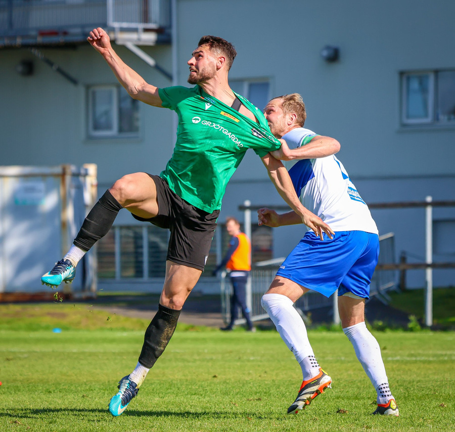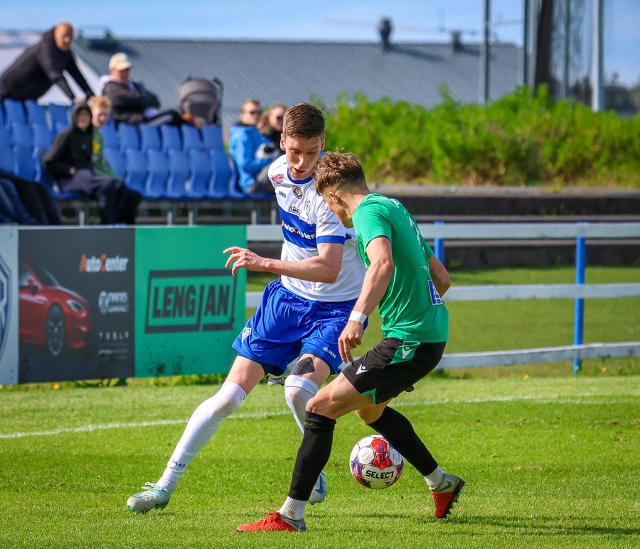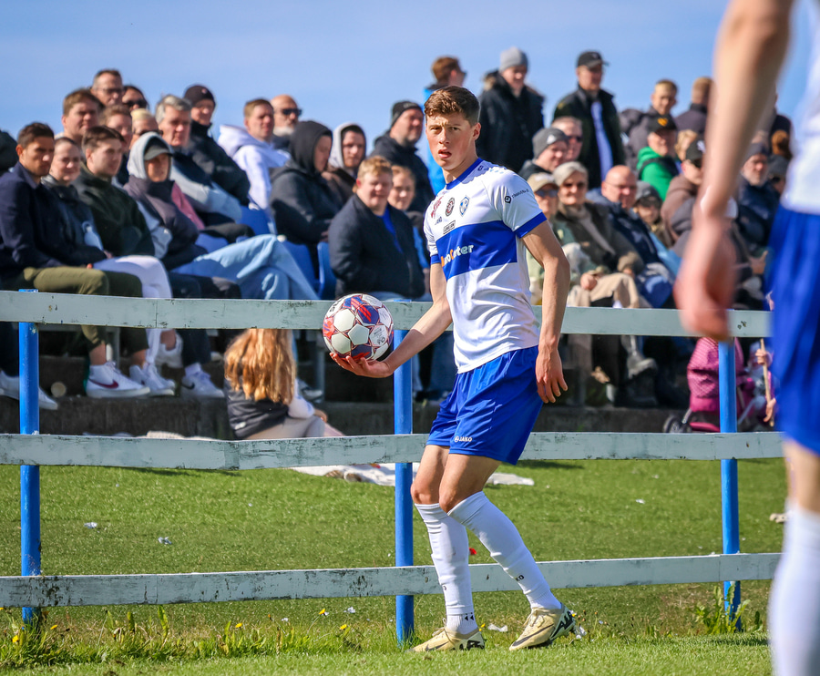 Kenneth á fyrirgjöf af hægri kantinum sem Dominik reynir að kasta sér fyrir en hann rétt missir af botlanum.