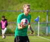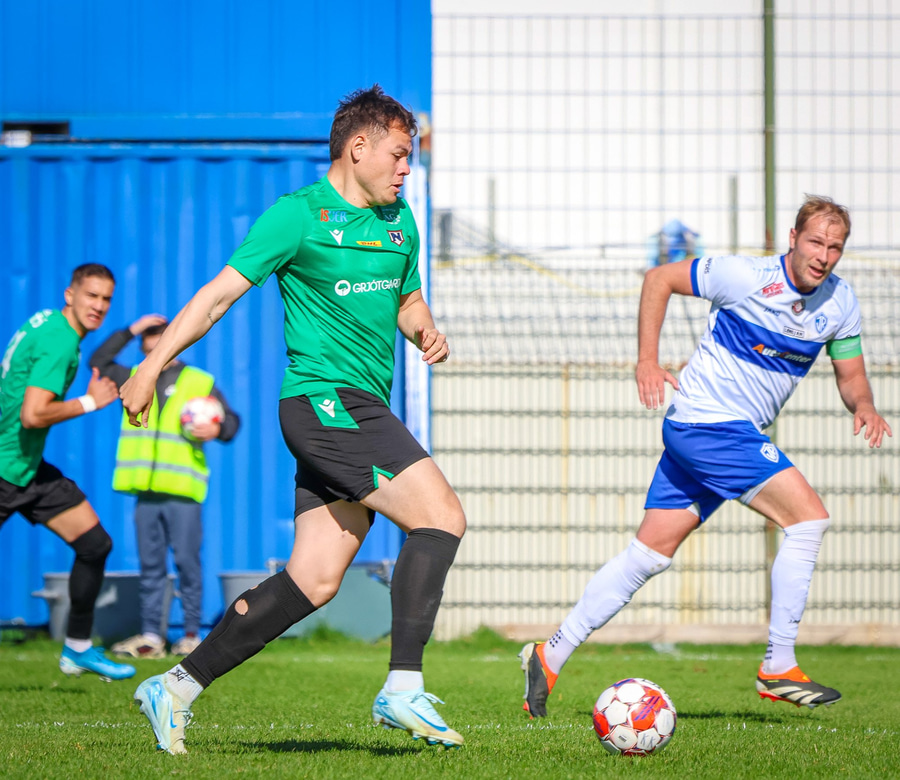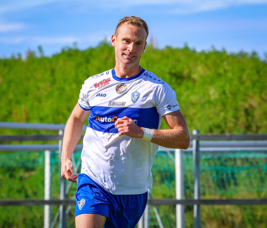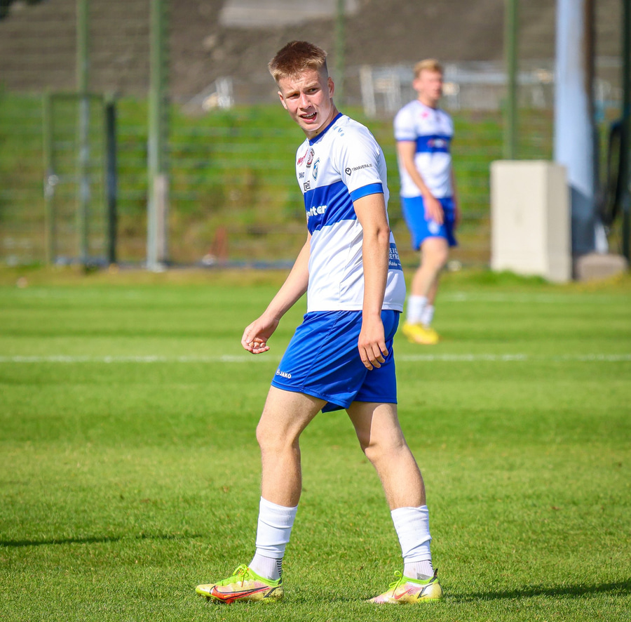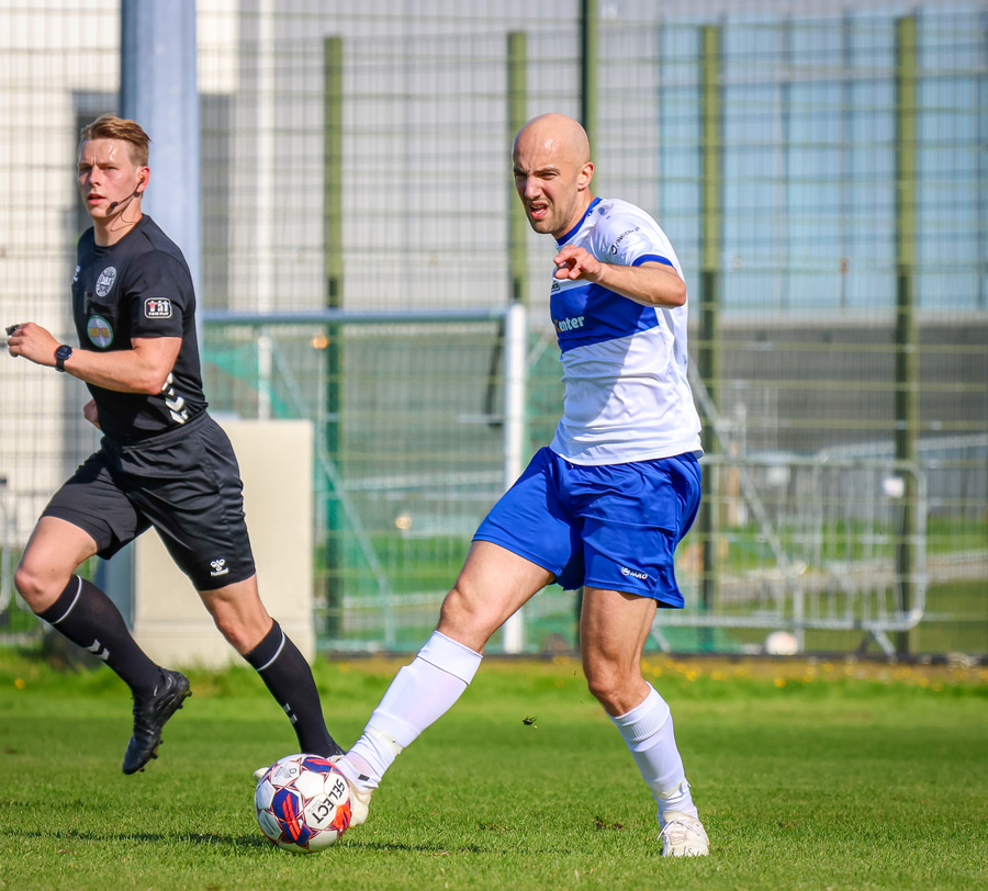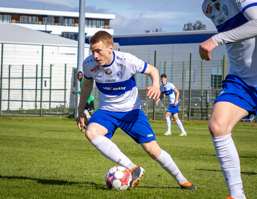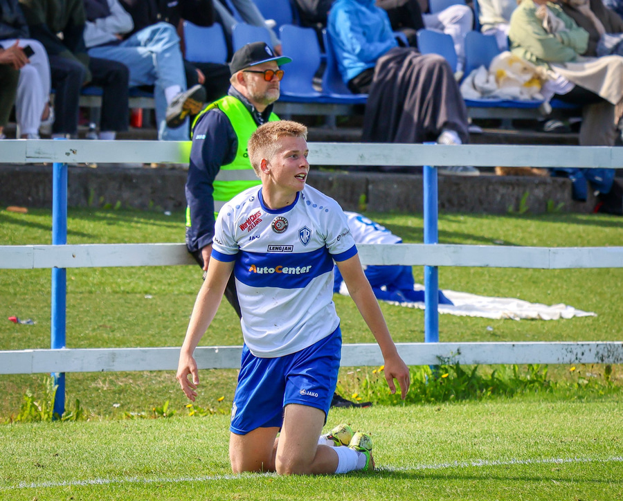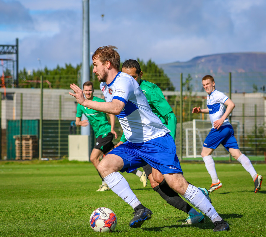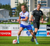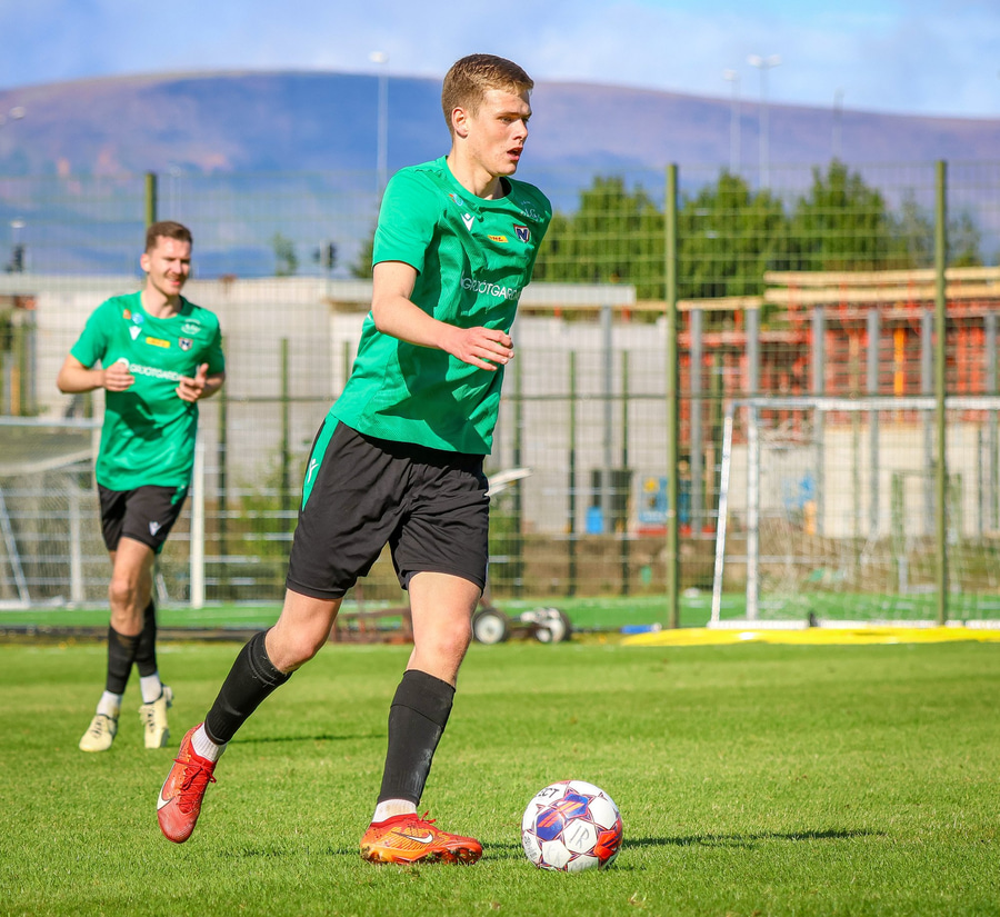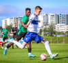 Kenneth á fyrirgjöf af hægri kantinum sem Dominik reynir að kasta sér fyrir en hann rétt missir af botlanum.