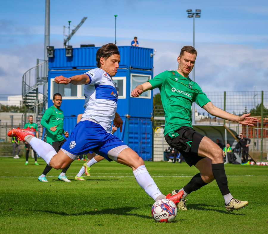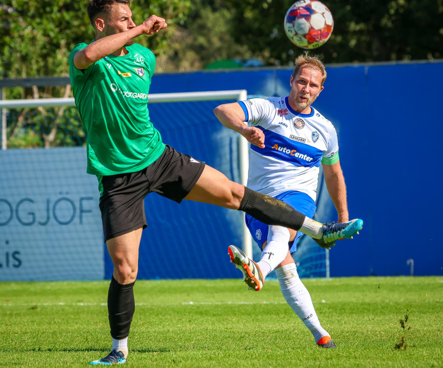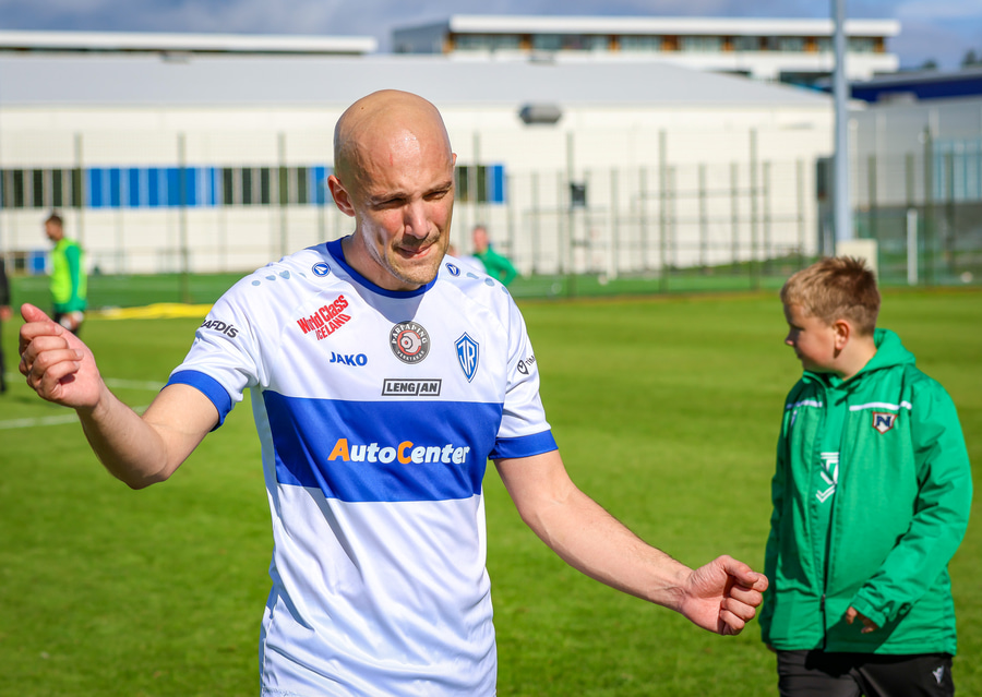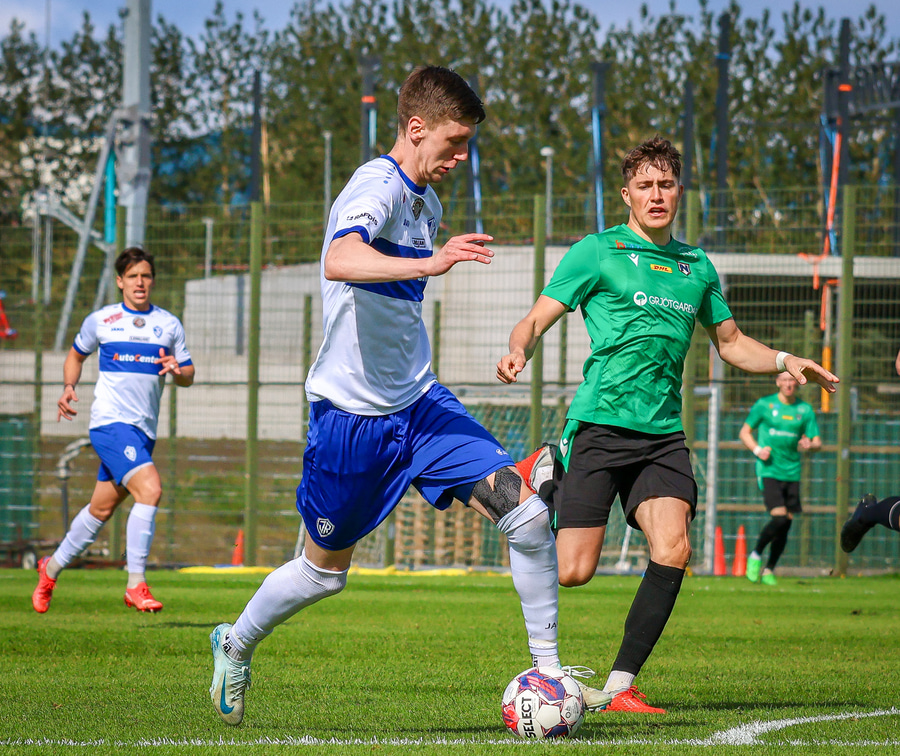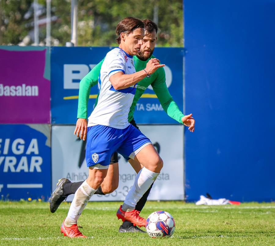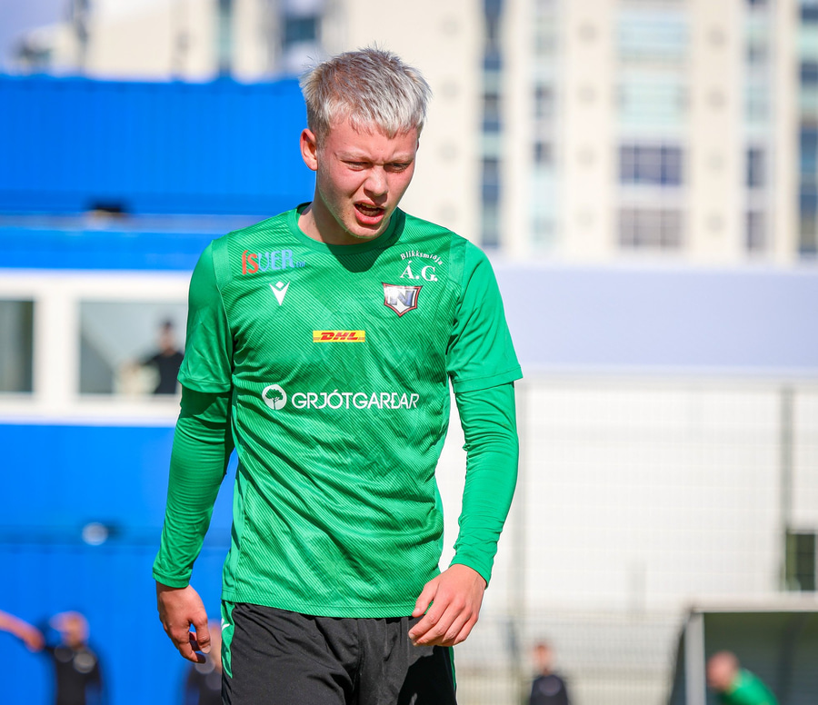 Dominik fær boltann við vítateiginn í góðri skotstöðu og lætur vaða á markið. Vilhelm ver boltann út í teig þar sem Kenneth er aleinn en Vilhelm ver gríðarlega vel frá honum.