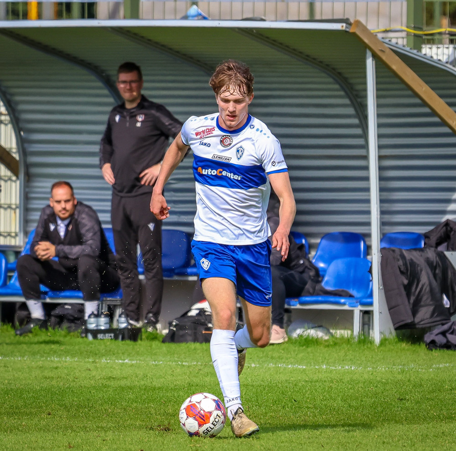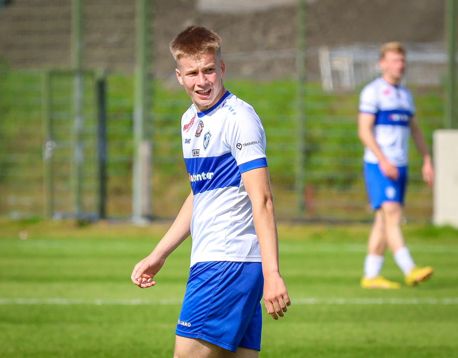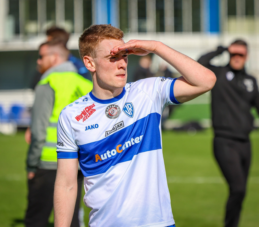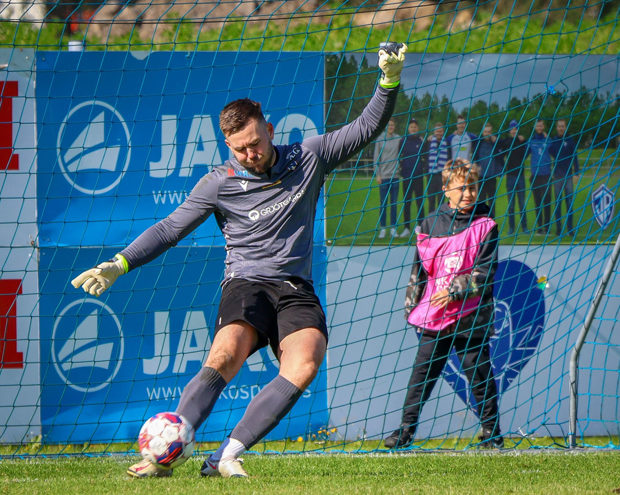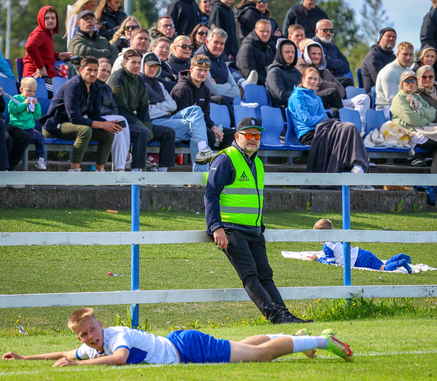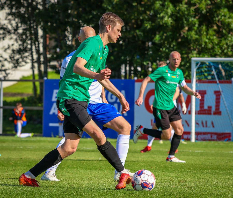 Dominik fær boltann við vítateiginn í góðri skotstöðu og lætur vaða á markið. Vilhelm ver boltann út í teig þar sem Kenneth er aleinn en Vilhelm ver gríðarlega vel frá honum.