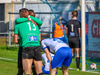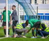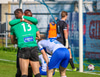 Hákon sækir aukaspyrnu fyrir ÍR í góðri fyrirgjafarstöðu vinstra megin á vellinum. Tómas fékk boltann frá Marcello eftir markspyrnu frá Aroni og rann eitthvað til í grasinu og tæklaði Hákon.