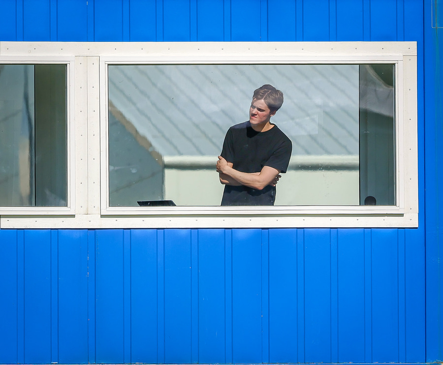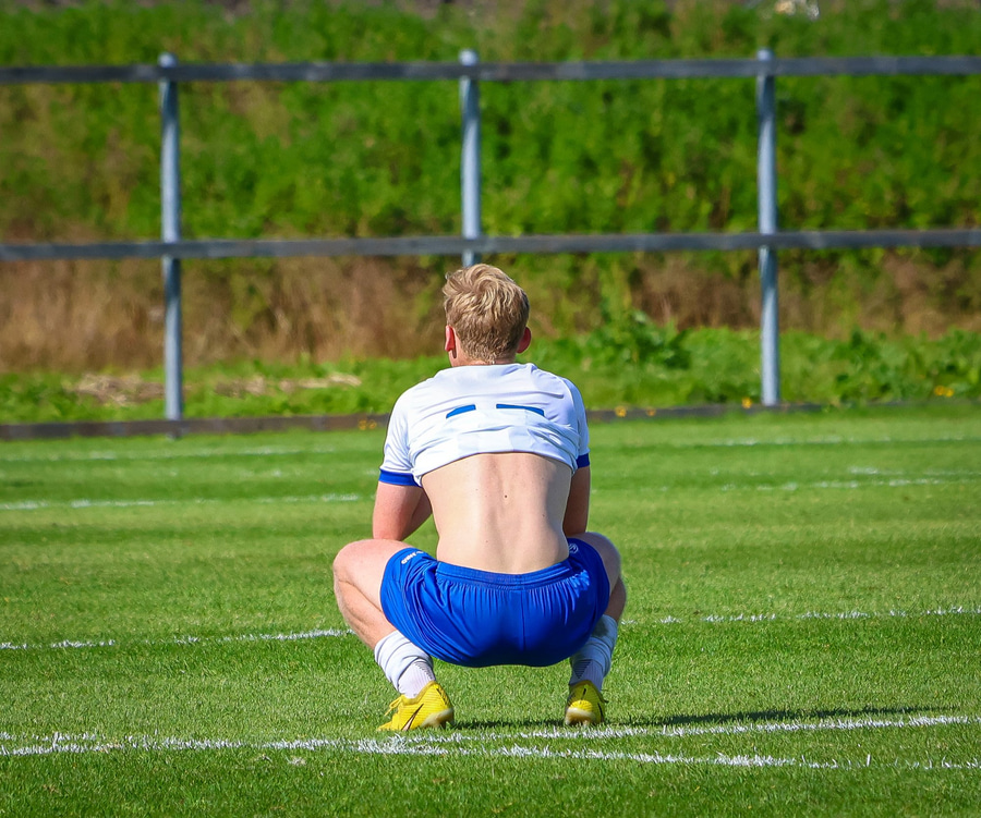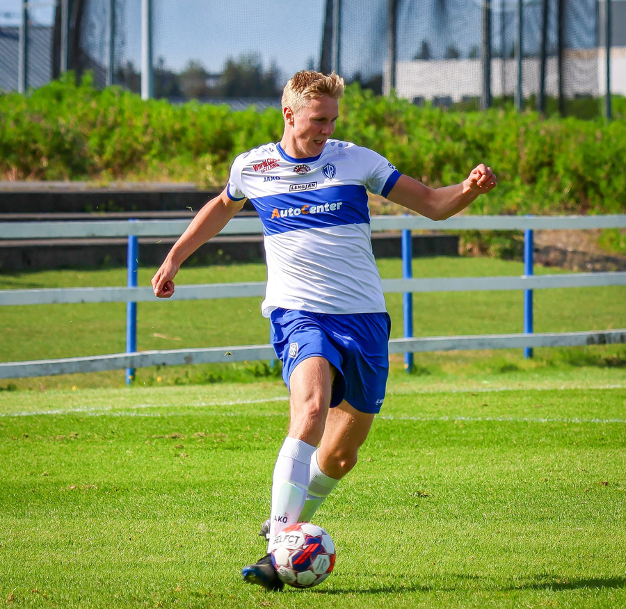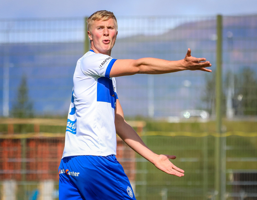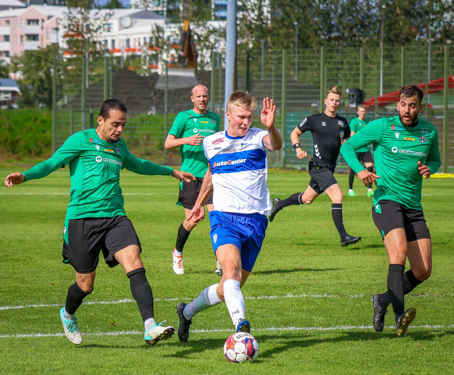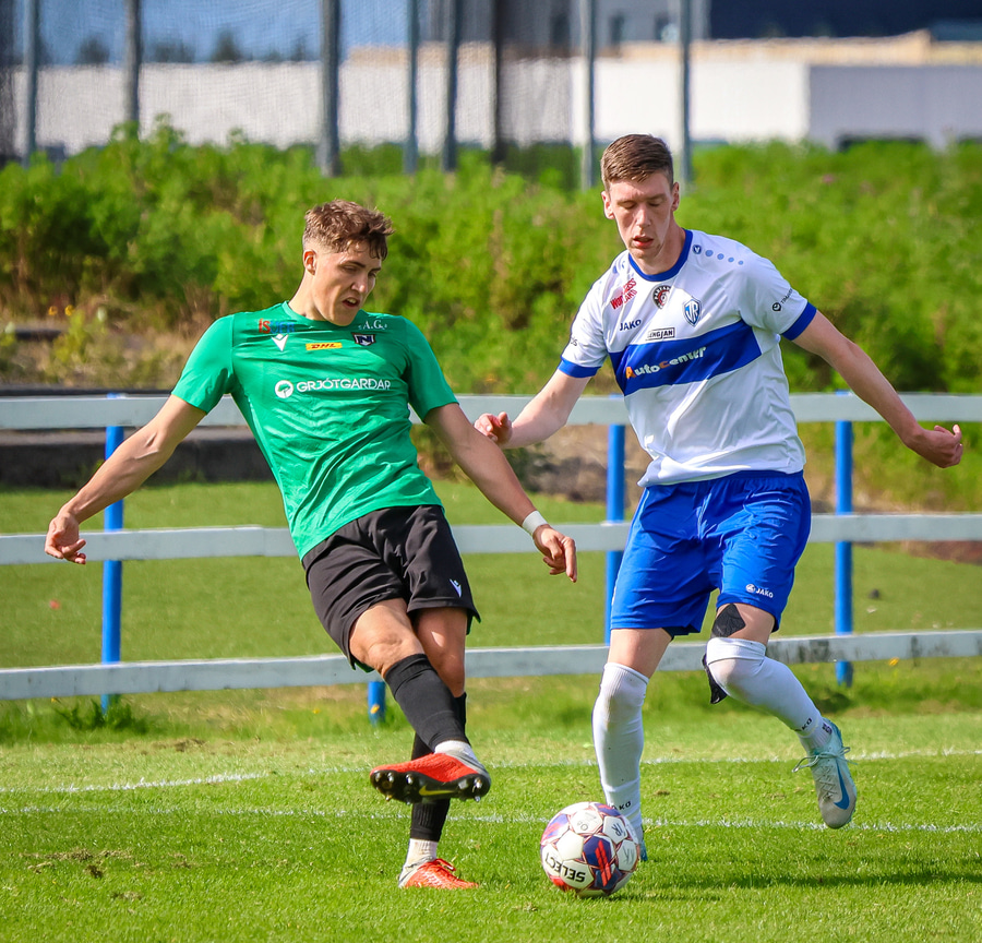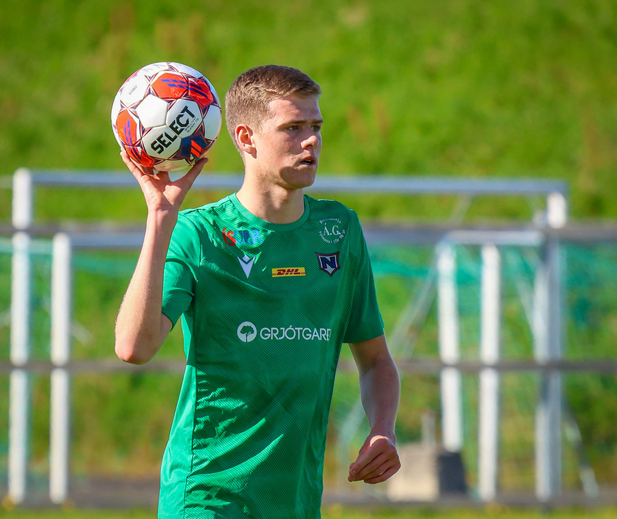 Bergvin kemst í hraðaupphlaup hægra megin á vellinum. Sigurjón er einn í vörninni hjá Njarðvík og hinum megin hlaupa Hákon og Bragi á harðaspretti. Bergvin reynir að þræða boltann yfir en Sigurjón kemur í veg fyrir það.