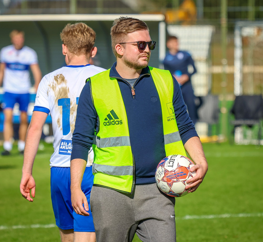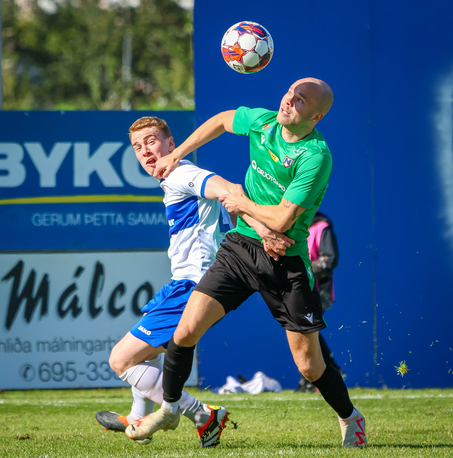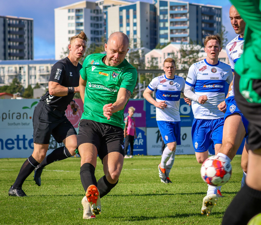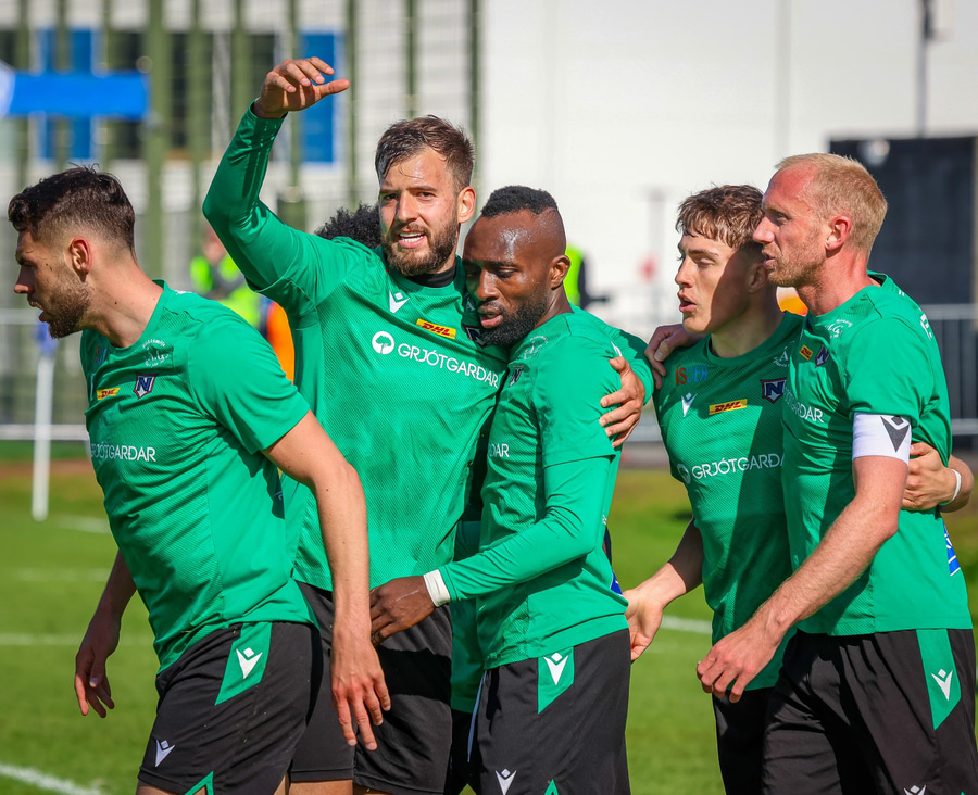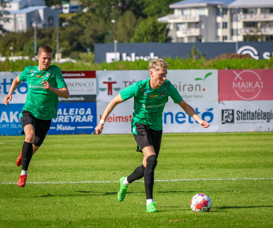Njarðvík byrjar með boltann og það er Dominik sem sparkar okkur af stað.