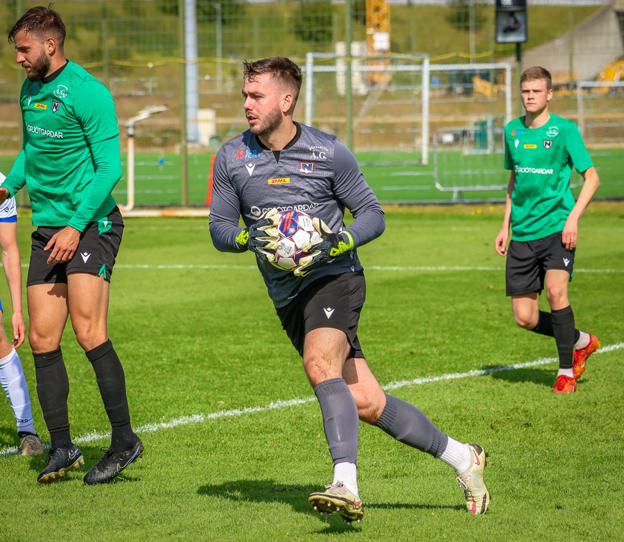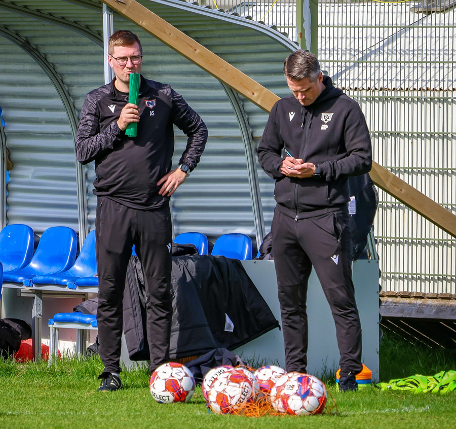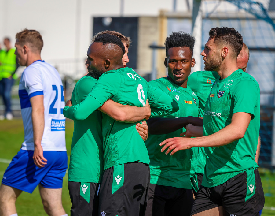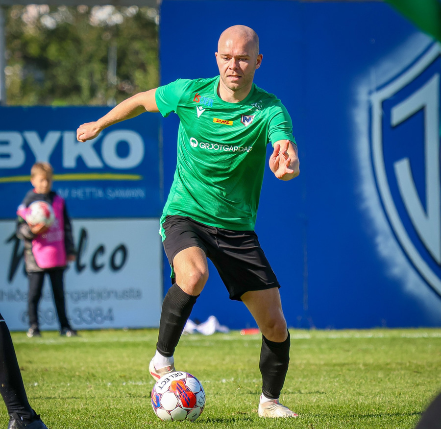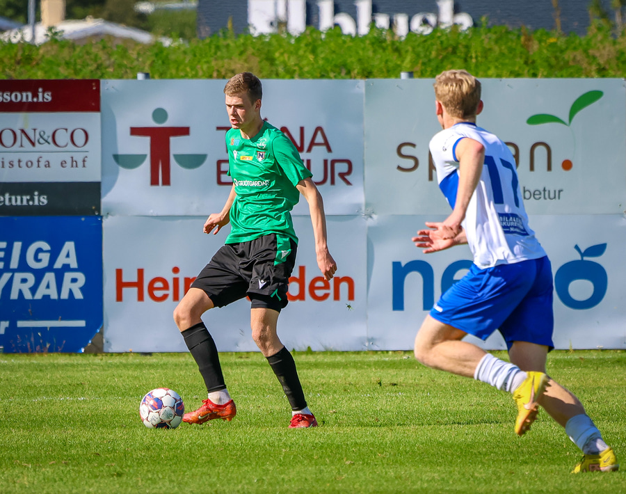 Njarðvík byrjar með boltann og það er Dominik sem sparkar okkur af stað.