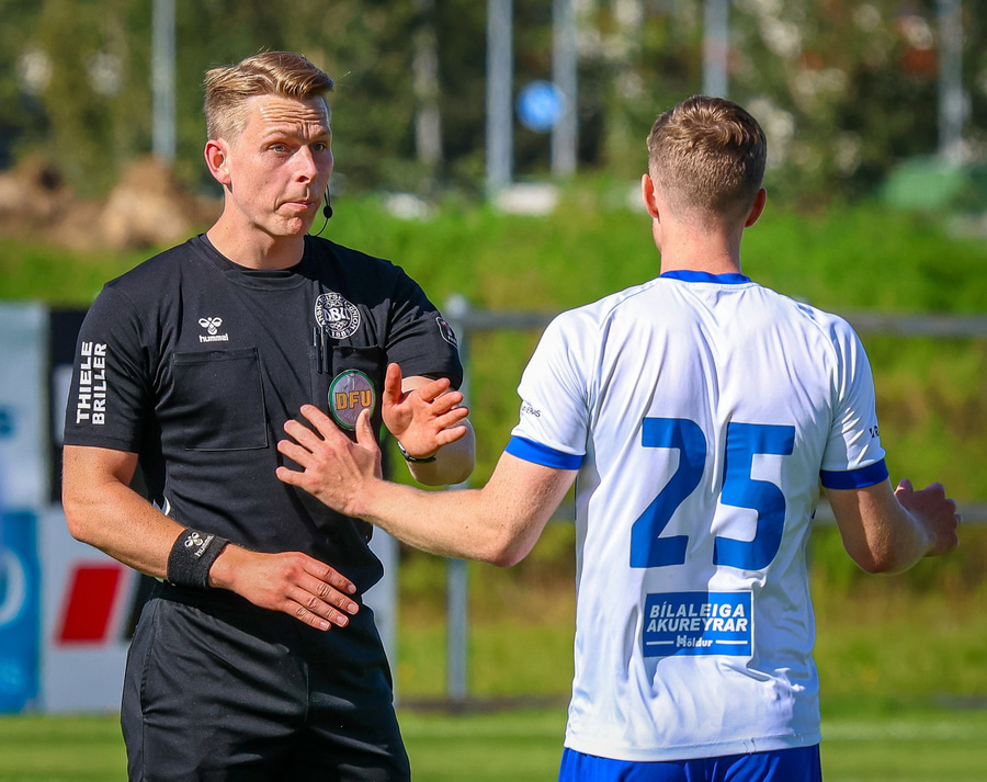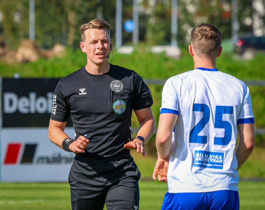 Frederik Veis Svendsen er með flautuna í dag. Honum til halds og trausts á hliðarlínunum eru þeir Bergur Daði Ágústsson og Andreas Bögebjerg Holt. Gunnar Oddur Hafliðason er varadómarari og eftirlitsmaður er Þórður Georg Lárusson.