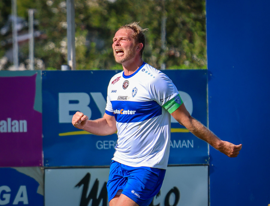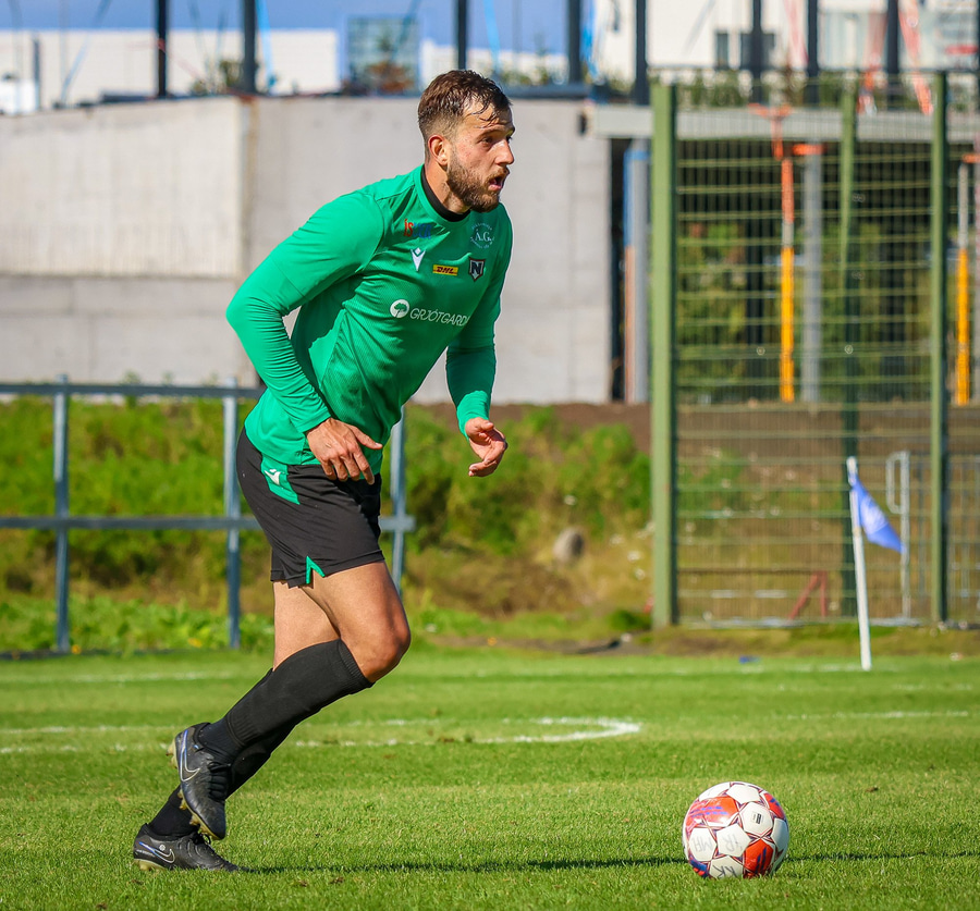 Ágúst er í hægra hálfsvæðinu og gefur boltann á Bergvin sem er aðeins fyrir aftan D-bogann. Hann lætur vaða og boltann endar í stönginni og í markspyrnu