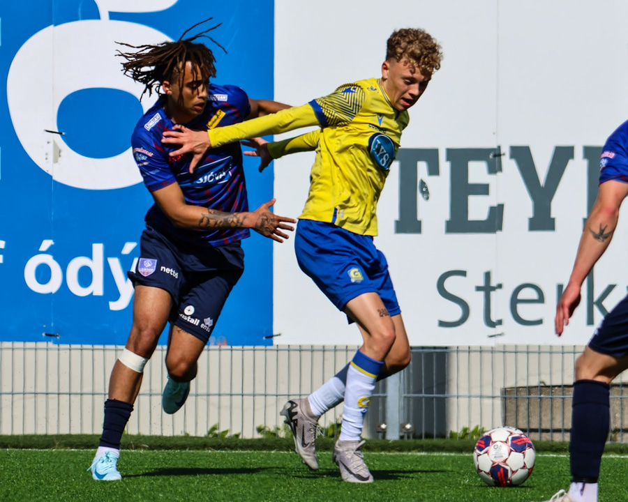Róbert Quental við það að komast í góða stöðu við teiginn en tapar boltanum þegar hann er að rekja hann áfram.
