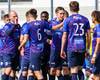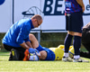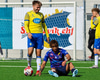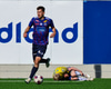 Andi Hoti hendir í eina rosalega tæklingu. Adam Árni liggur eftir en mér sýndist að tæklingin hafi verið lögleg. Leiknismenn í stúkunni fögnuðu gríðarlega.