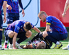 Færeyski dómarinn veit lítið hvað hann er að gera því miður, ansi margar skrítnar ákvarðanir í þessum leik. Núna lá leikmaður Grindavíkur með höfuðmeiðsli alveg heillengi þangað til hann flautaði.