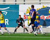 Adam Árni kemur sér í gott færi eftir hornspyrnu en skalli hans fer yfir markið.