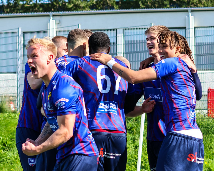 Leiknismenn eru búnir að vera ógeðslega góðir í því í dag að henda sér fyrir allt. Mikill karakter í þeirra liði.