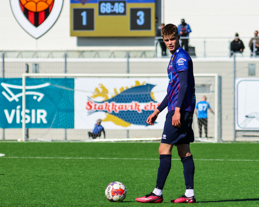 Einar Karl með góða aukaspyrnu í markmannshornið en Viktor Freyr náði að lesa það vel og varði með prýði.