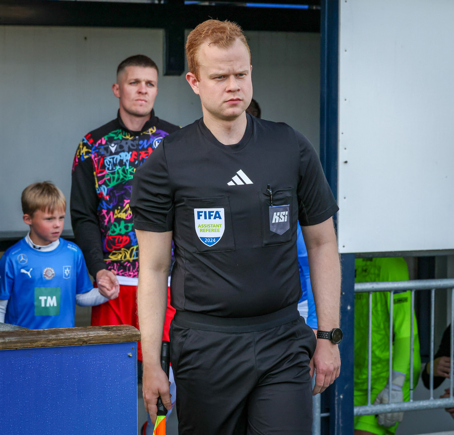 Jóhann Ingi flautar til leiksloka.