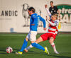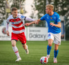 Atli Þór næstum búin að koma Arnþói Ara í gegn en Arnþór Ari nær ekki að leggja fyrir sig boltann.