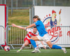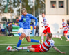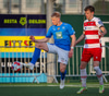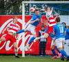 Óli Valur reynir að finna Róbert Frosta á fjær sem nær ekki að stýra skallanum að marki.