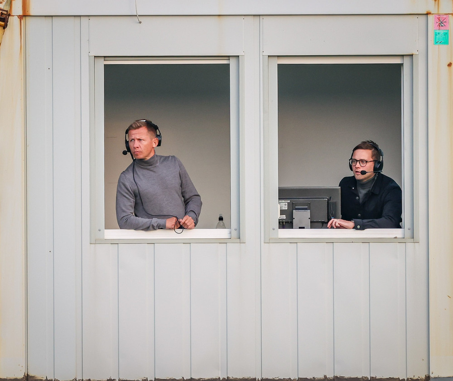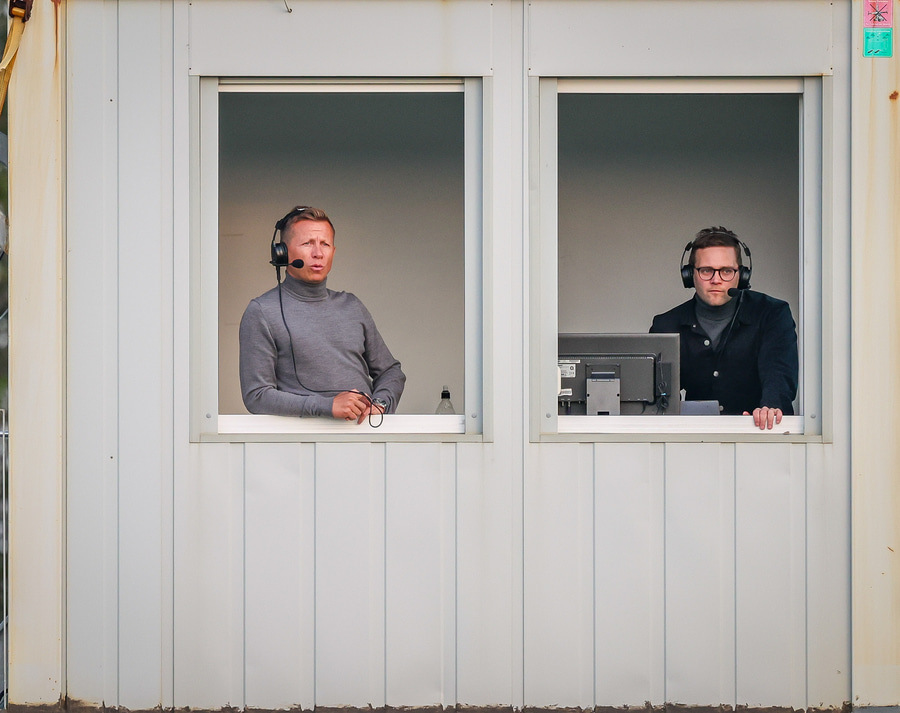 Stjörnumenn pressa vel og Óli Valur vinnur boltann mjög hátt á vellinum en Kjartan Már örlítið fyrir innan þegar hann fær sendinguna en hann kláraði færið þó virkilega vel en því miður var flaggið farið á loft.