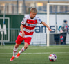 George Nunn með tilraun sem virðist fara af varnarmanni Stjörnunnar og framhjá því HK fær horn.