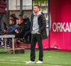 Tarik Ibrahimagic með flottan bolta fyrir úr horninu en Nikolaj Hansen nær ekki að stýra boltaum á markið.