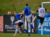 Hornspyrna frá FH og Arnór Borg reynir hjólhestinn, hittir bara ekki alveg boltan.