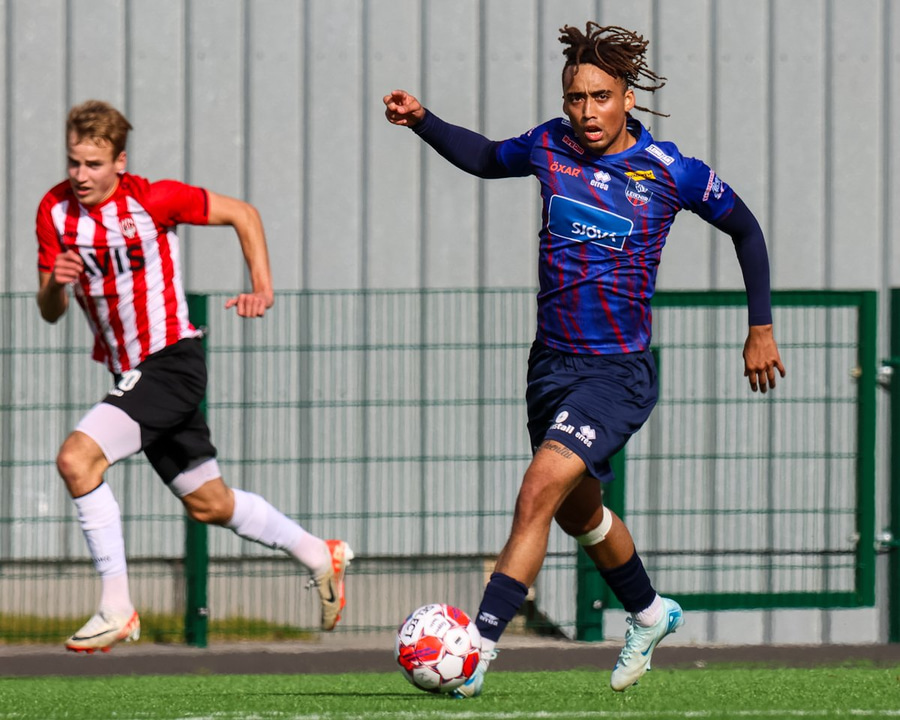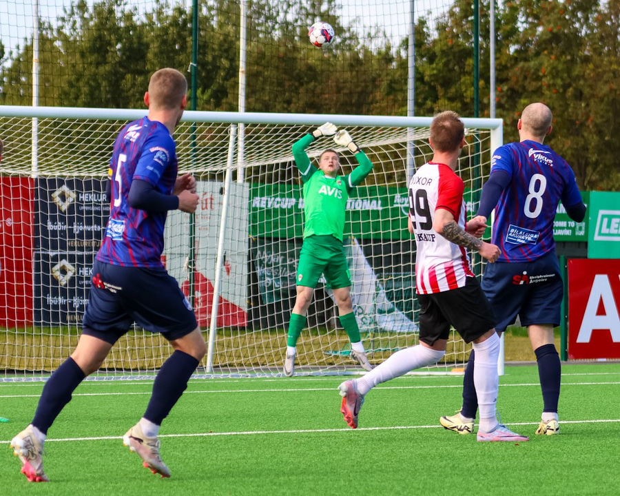 Kári spilar stutt inn á teiginn og fær hann aftur áður en hann nær stuttri fyrirgjöf á Njörð sem skallar framhjá.