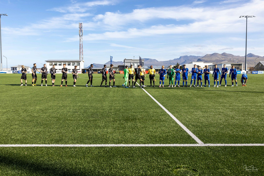 Lið gestanna hefja þennan leik og sækja í átt að Sundlaug Ólafsvíkur í fyrri hálfleik