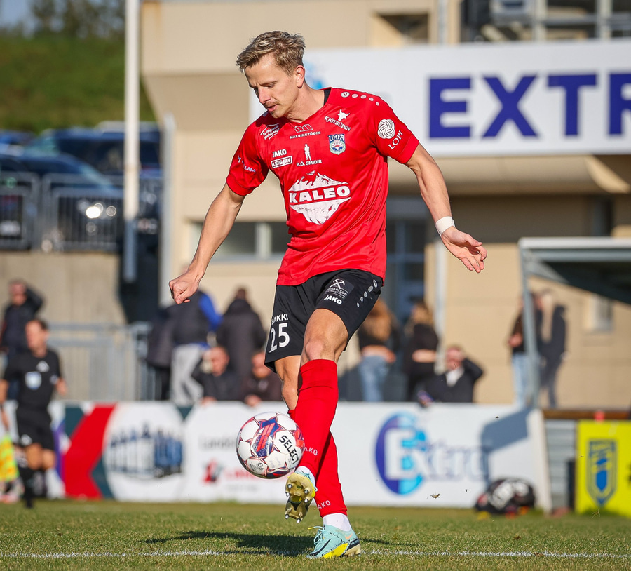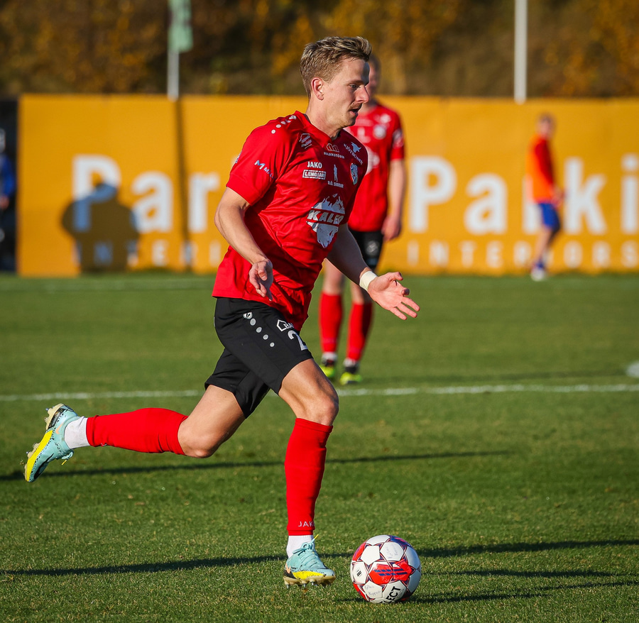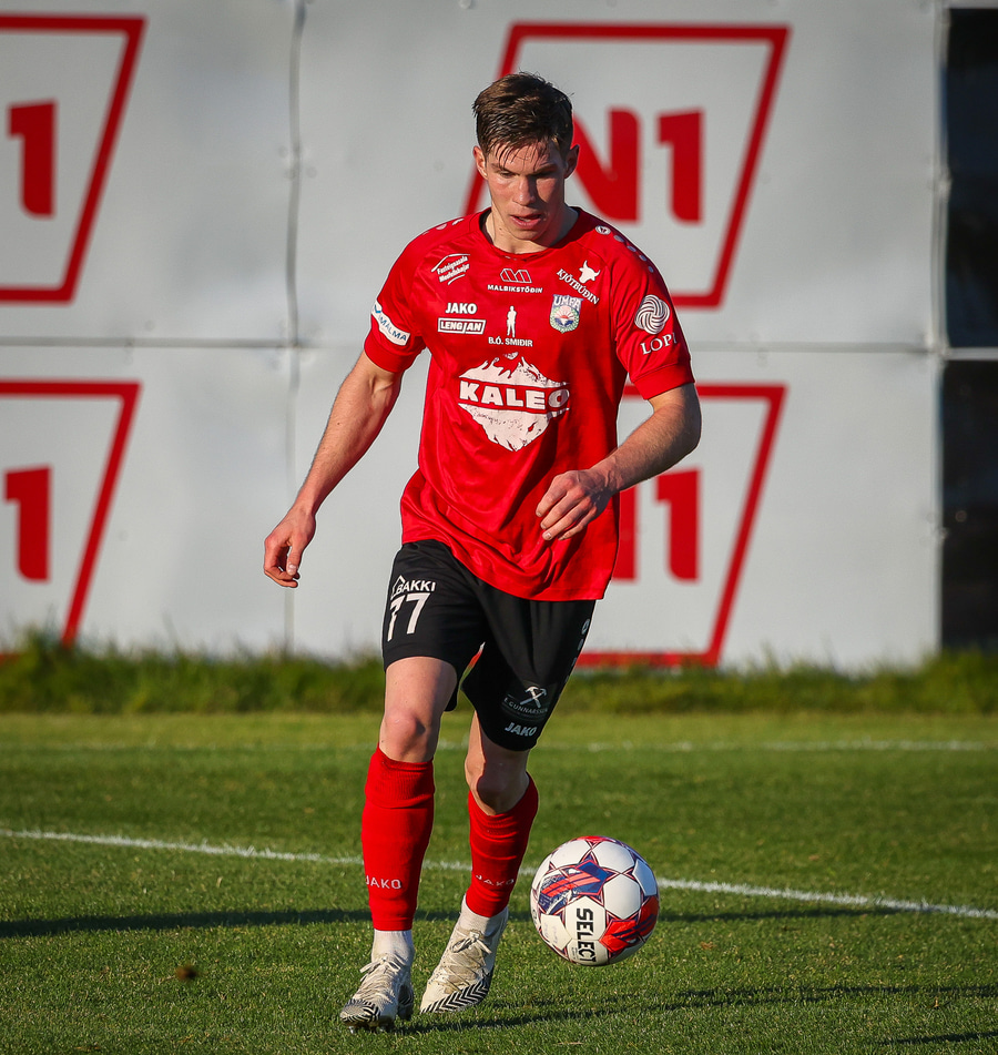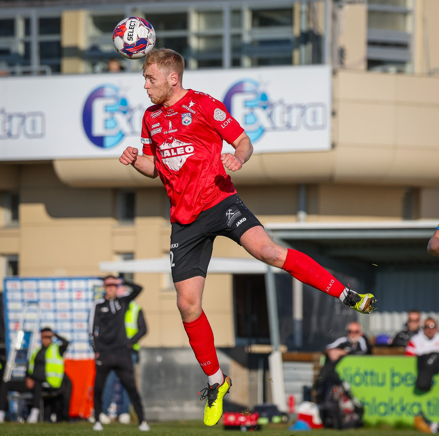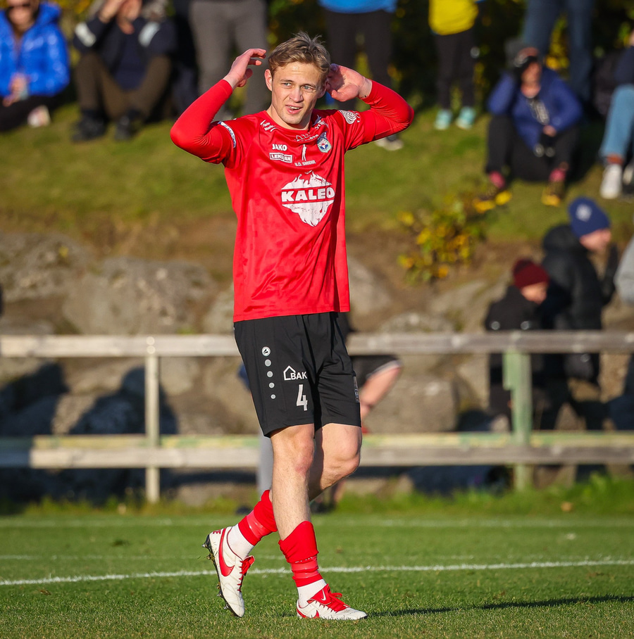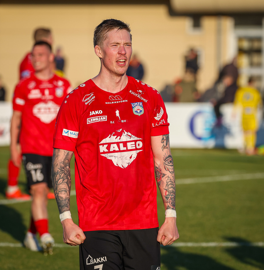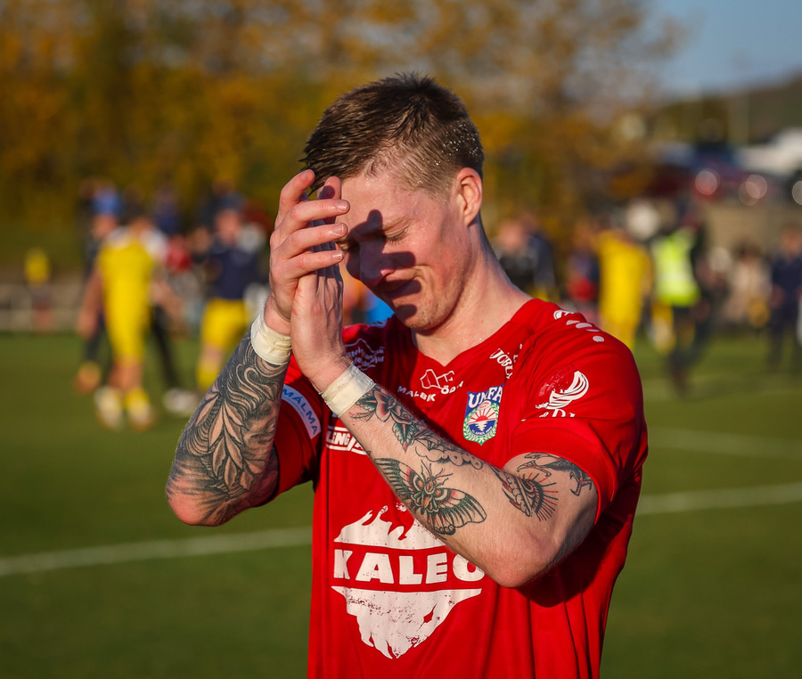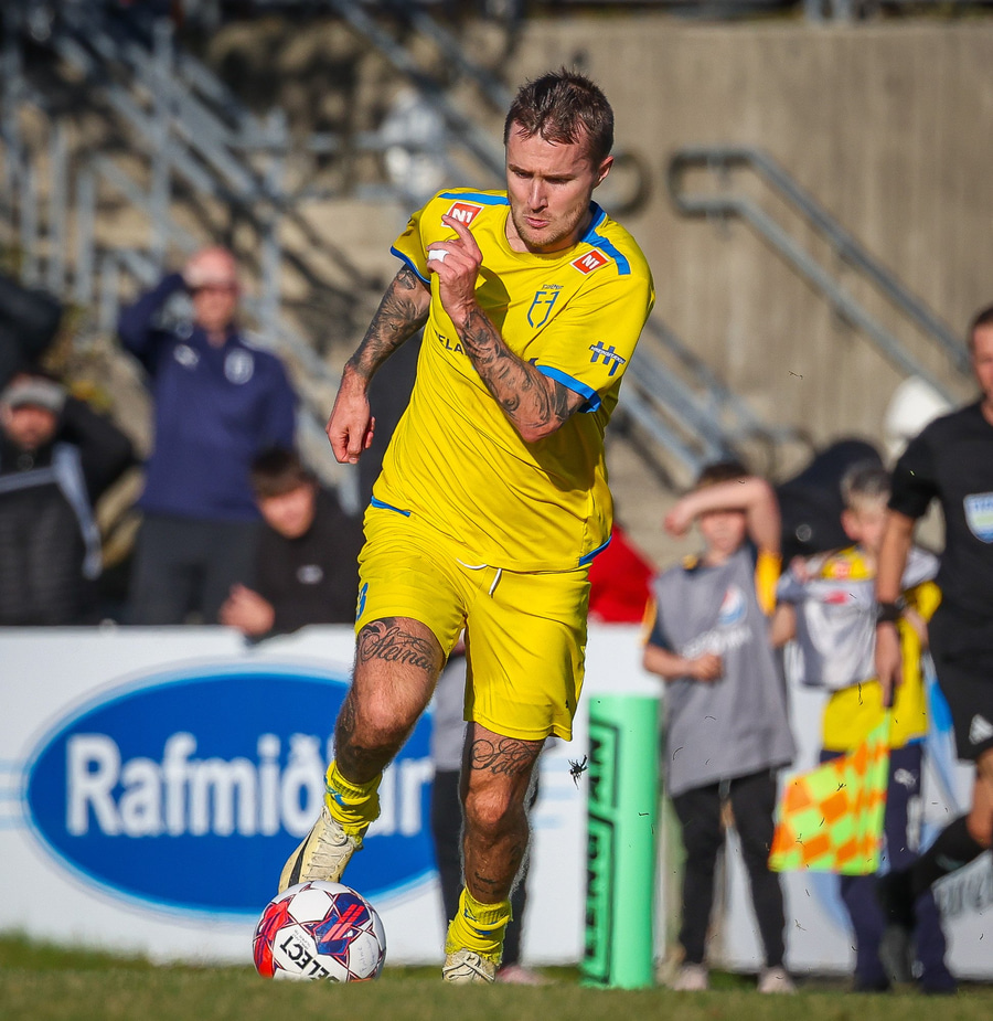 Með því að fá rauða spjaldið fer hann hinsvegar í bann í seinni leiknum hér í dag gegn Fjölni en verður löglegur í mögulegum úrslitaleik.
