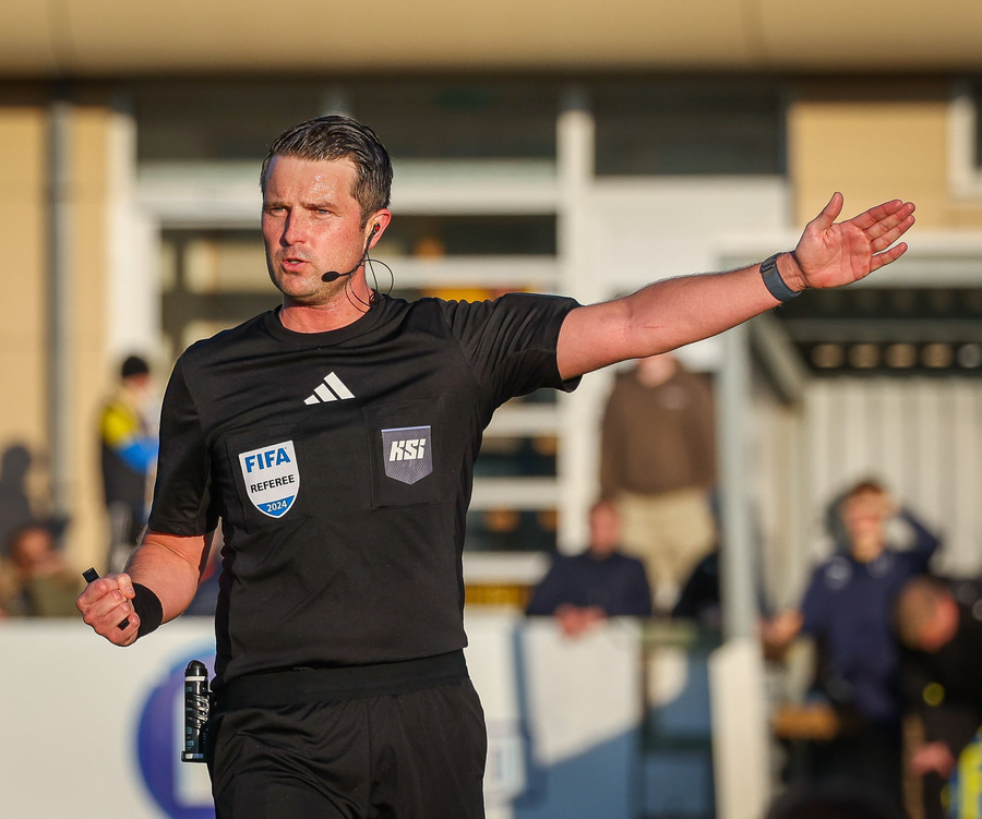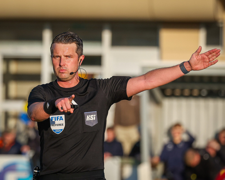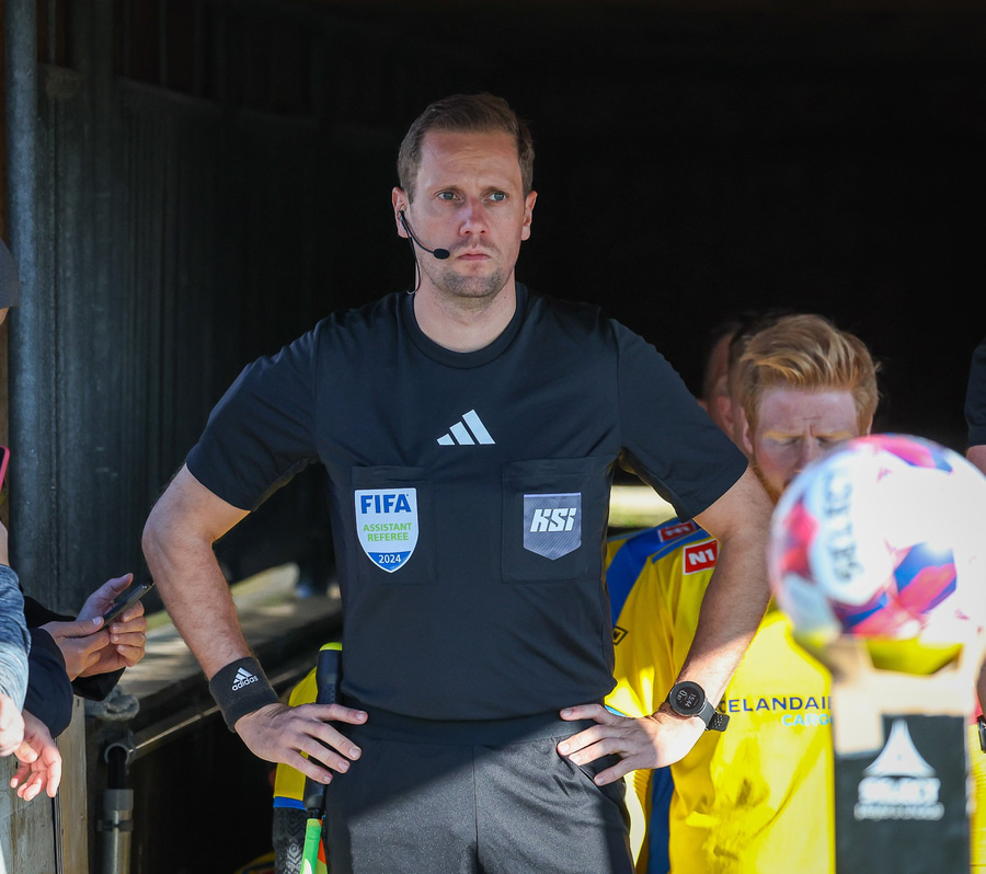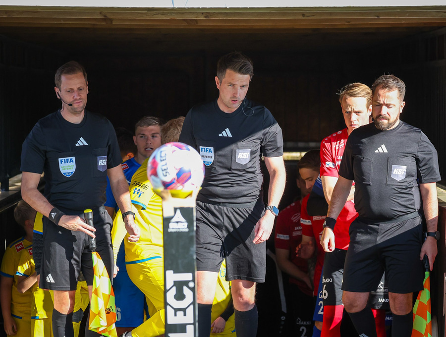 Vilhjálmur Alvar flautar til hálfleiks, Afturelding ganga eflaust glaðari til búningsklefa enda leiða þeir einvígið 3-1.
