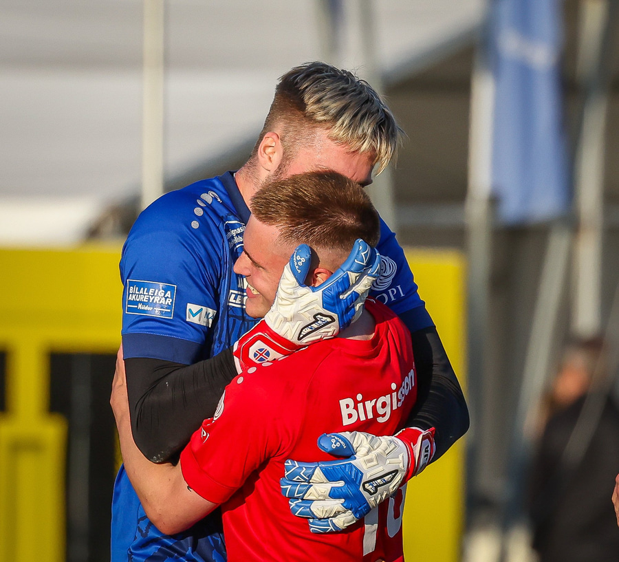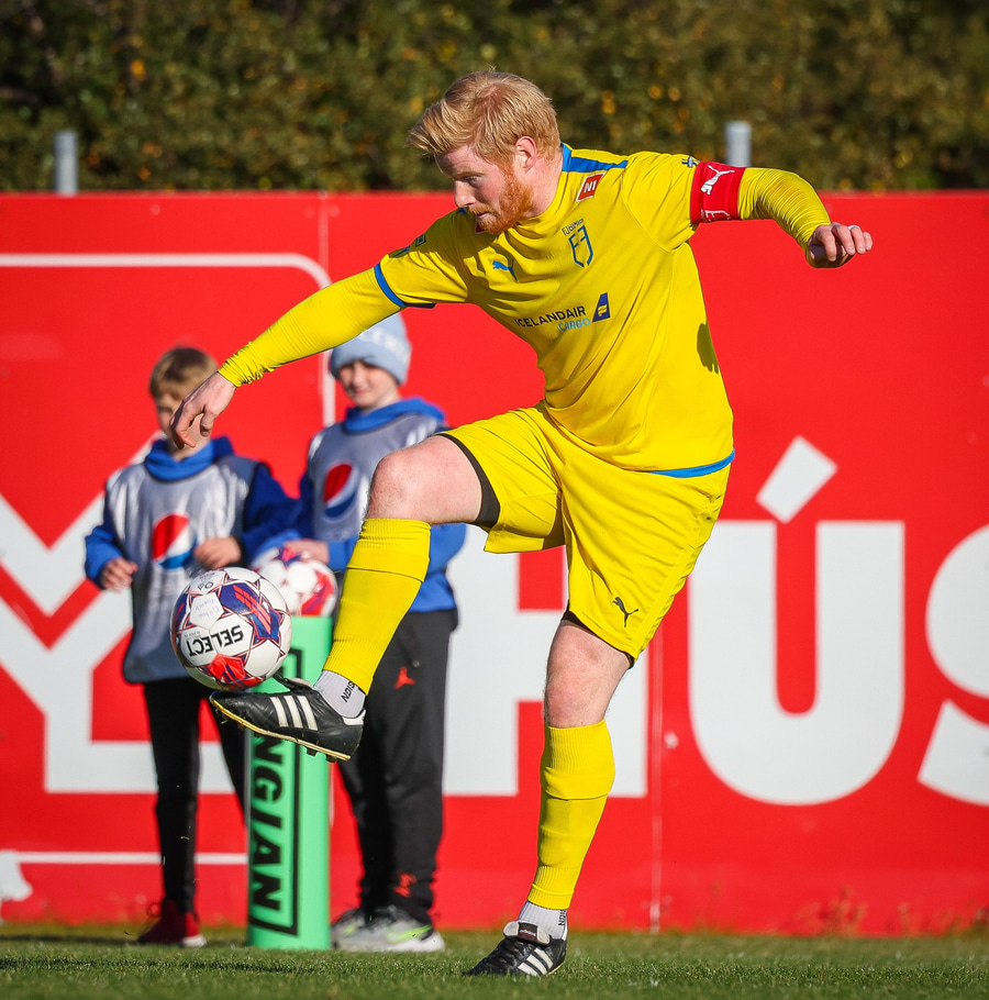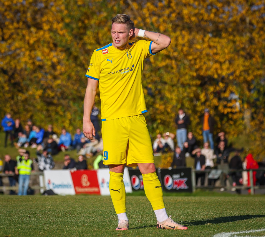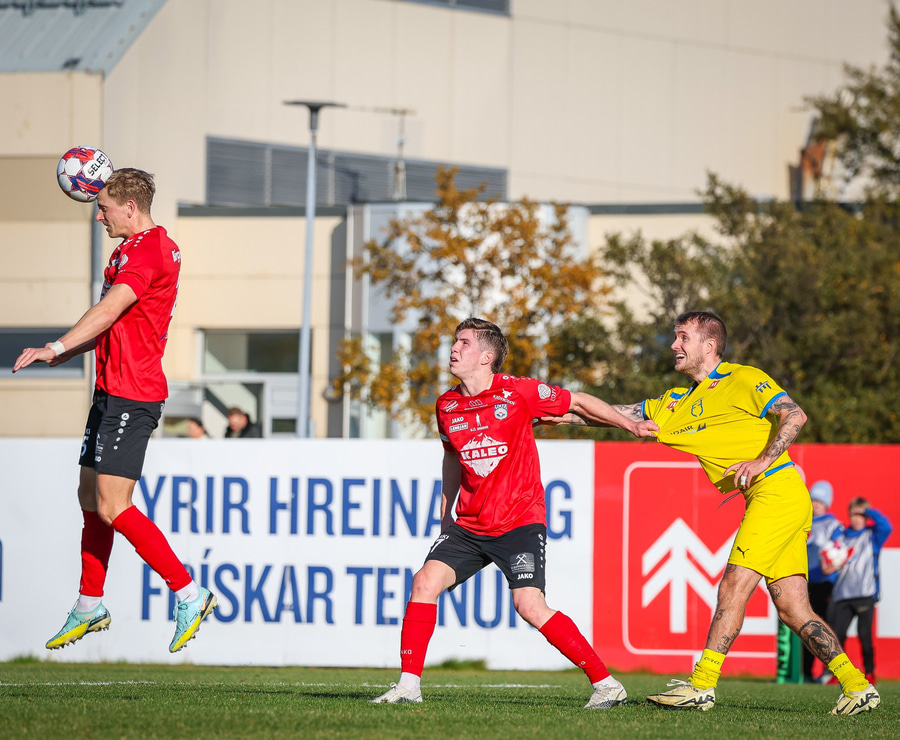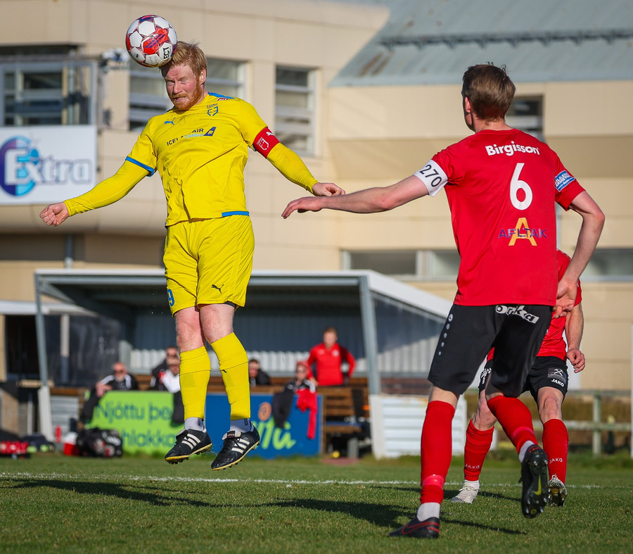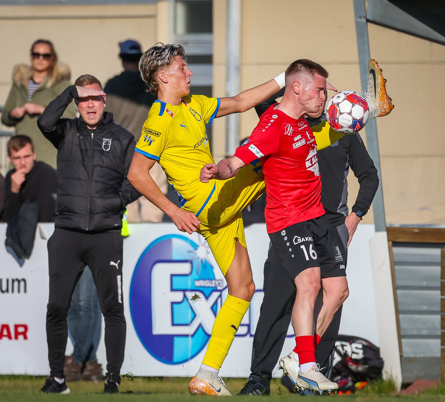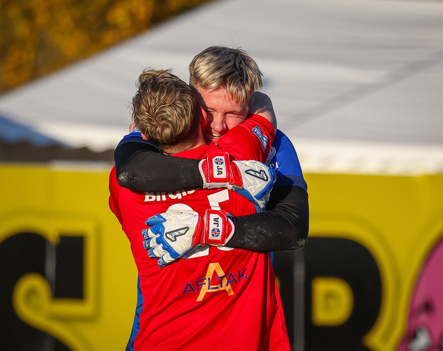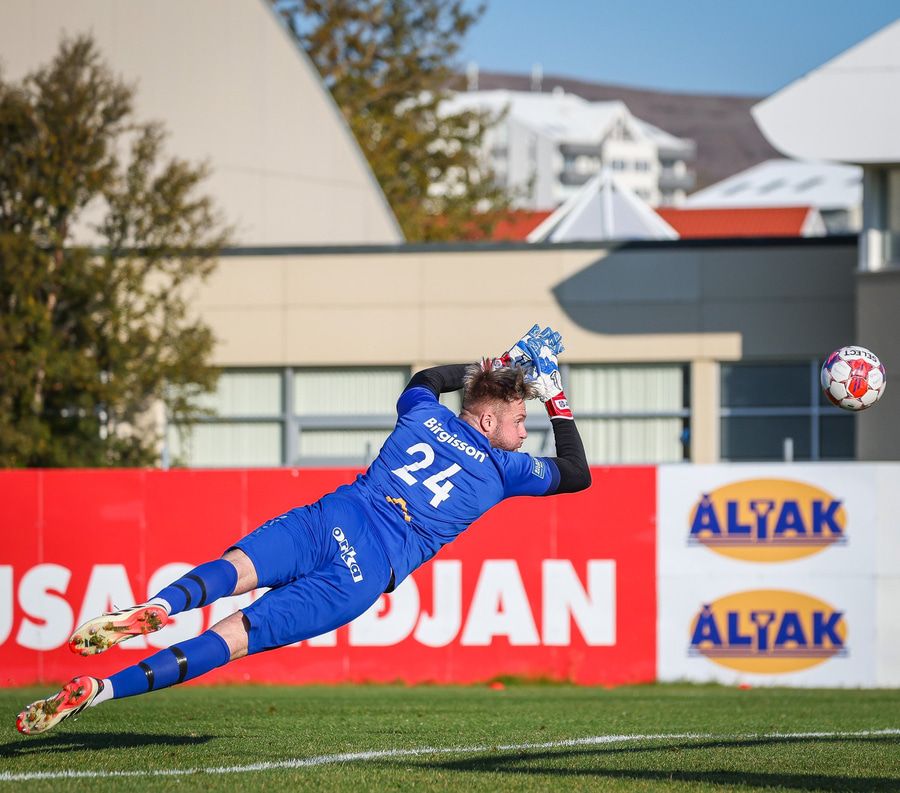 Bjarni Hafstein brýtur á Bjarti Bjarma, Villi Alvar flautar. Boltinn berst á Dag Austmann sem neglir boltanum í liggjandi Bjart eftir flautið.
