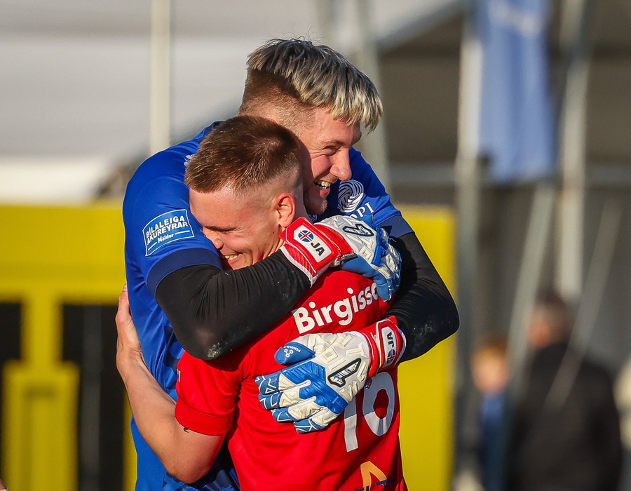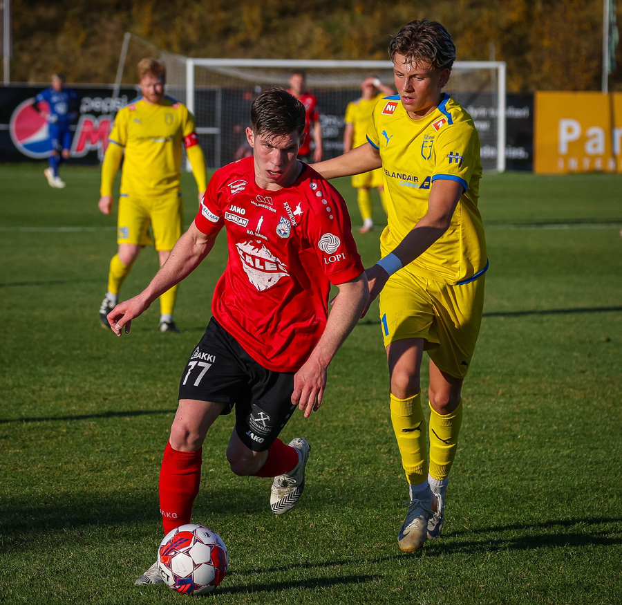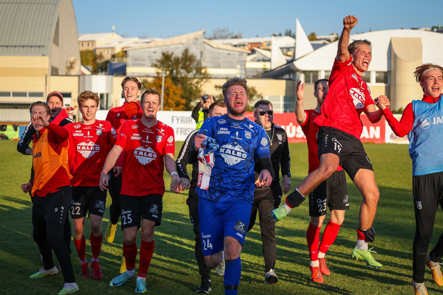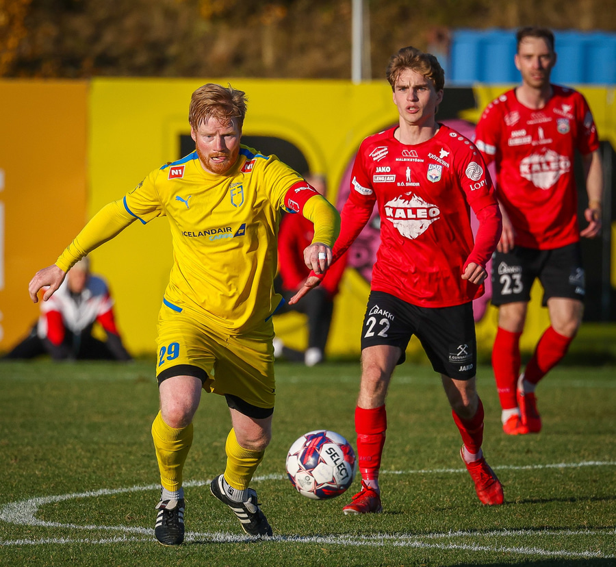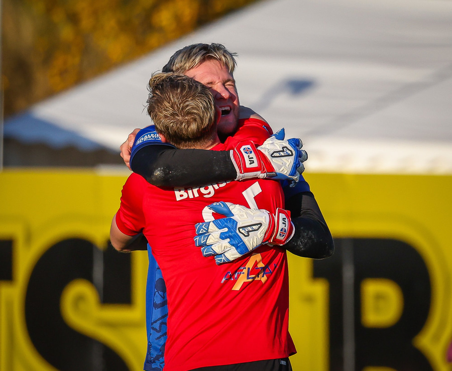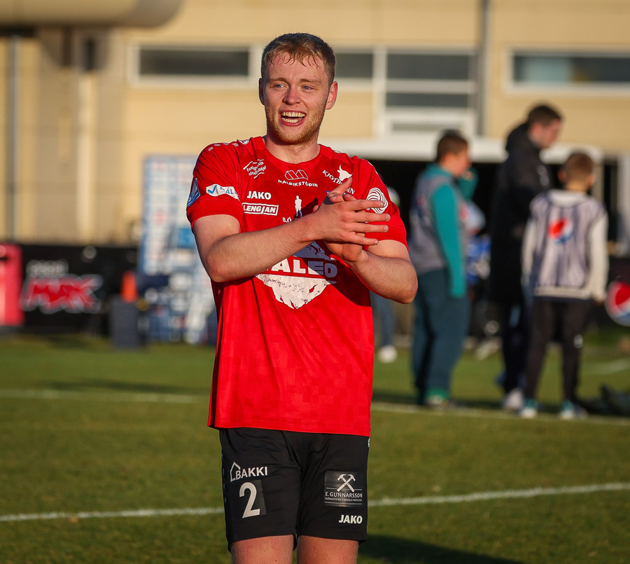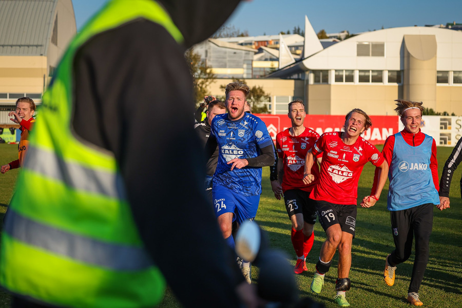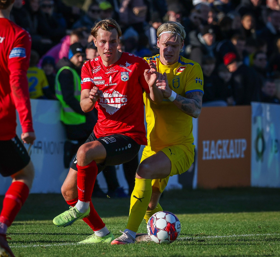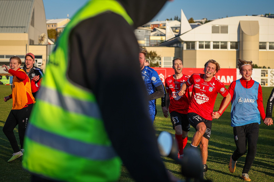 Bjarni Hafstein brýtur á Bjarti Bjarma, Villi Alvar flautar. Boltinn berst á Dag Austmann sem neglir boltanum í liggjandi Bjart eftir flautið.