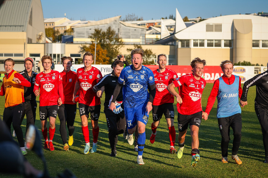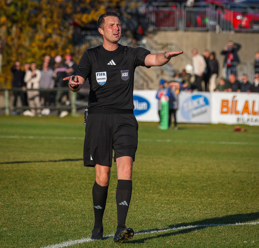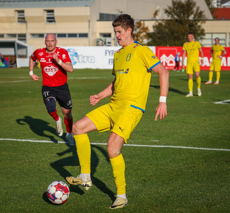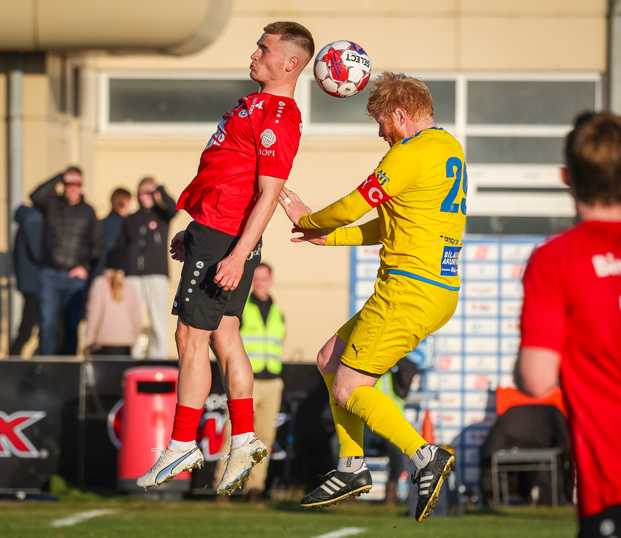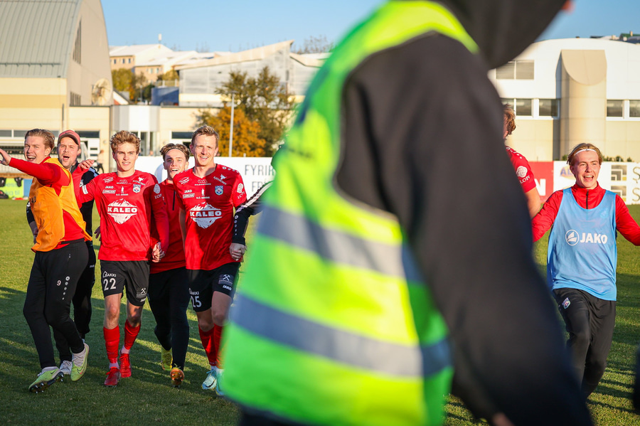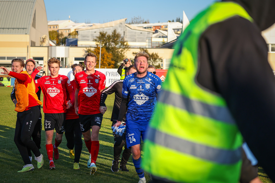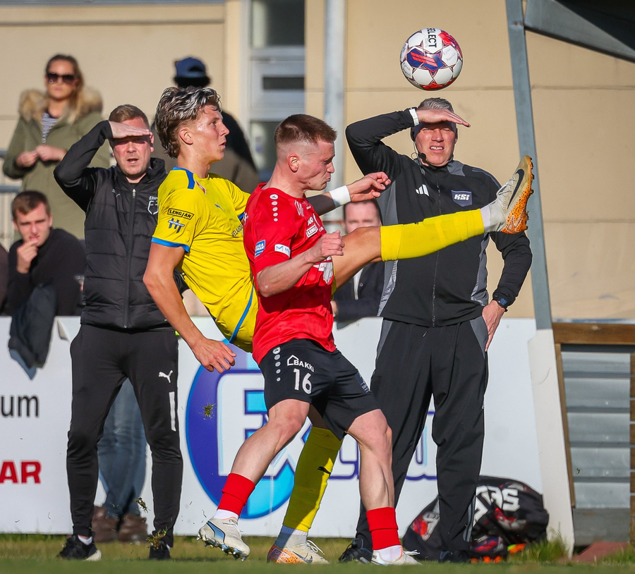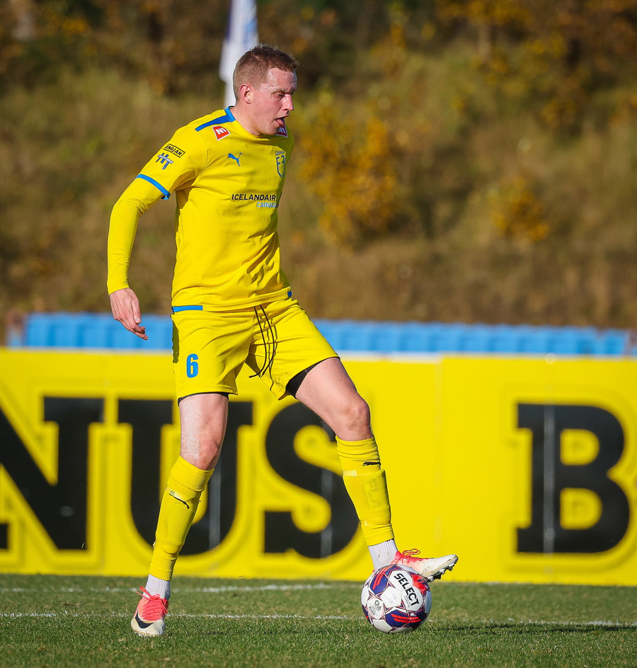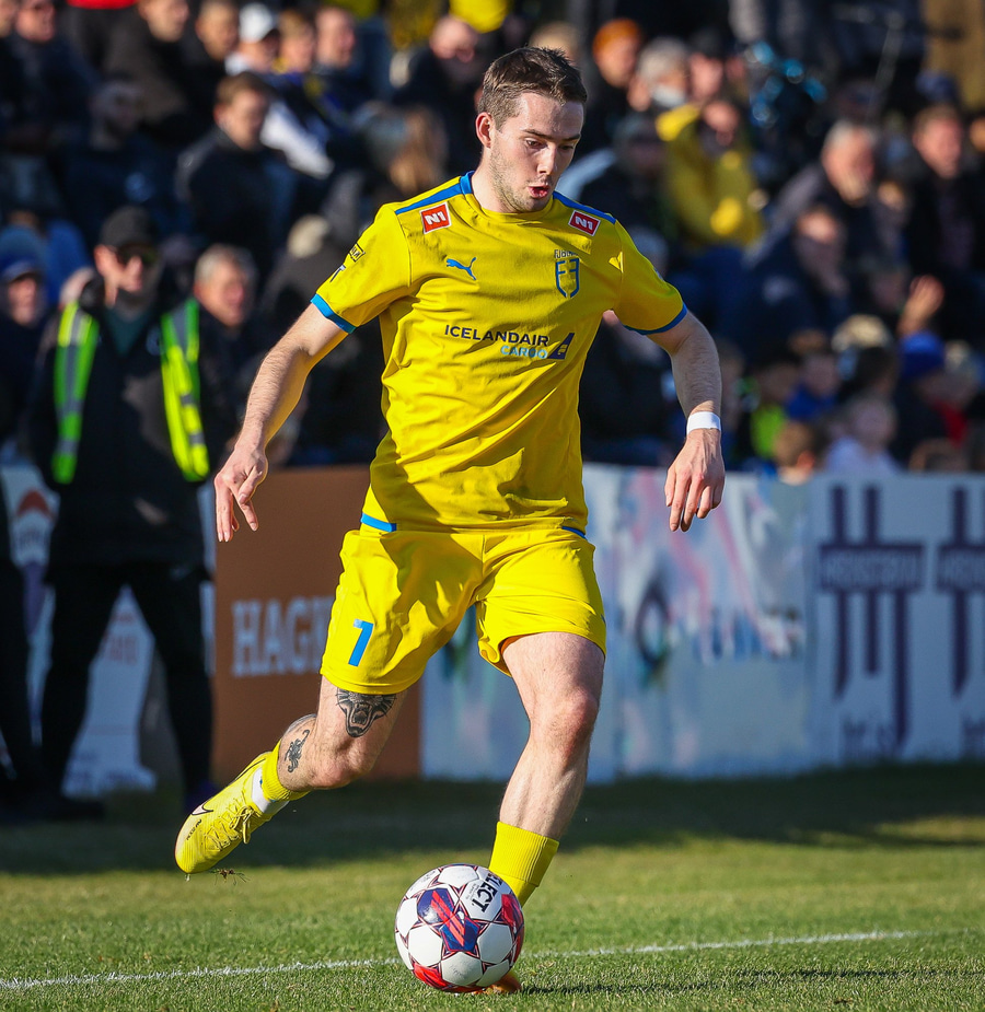 Bjarni Hafstein brýtur á Bjarti Bjarma, Villi Alvar flautar. Boltinn berst á Dag Austmann sem neglir boltanum í liggjandi Bjart eftir flautið.