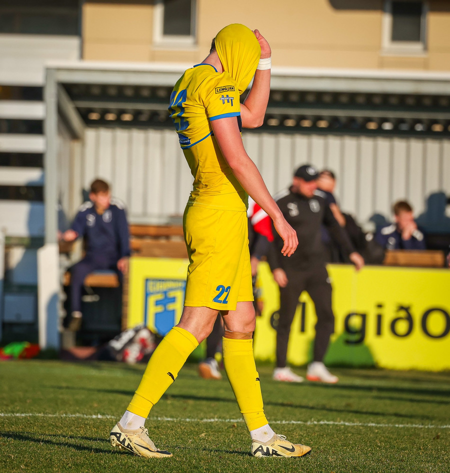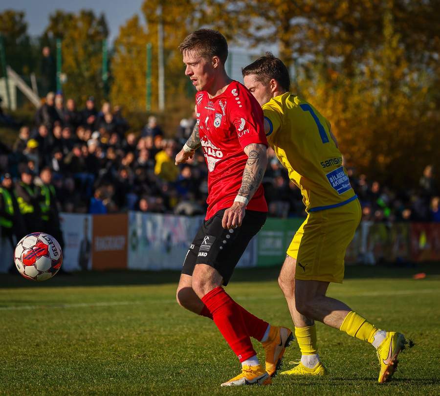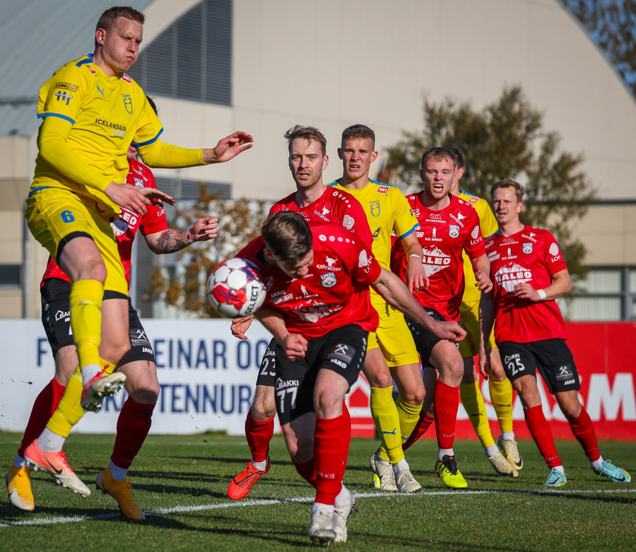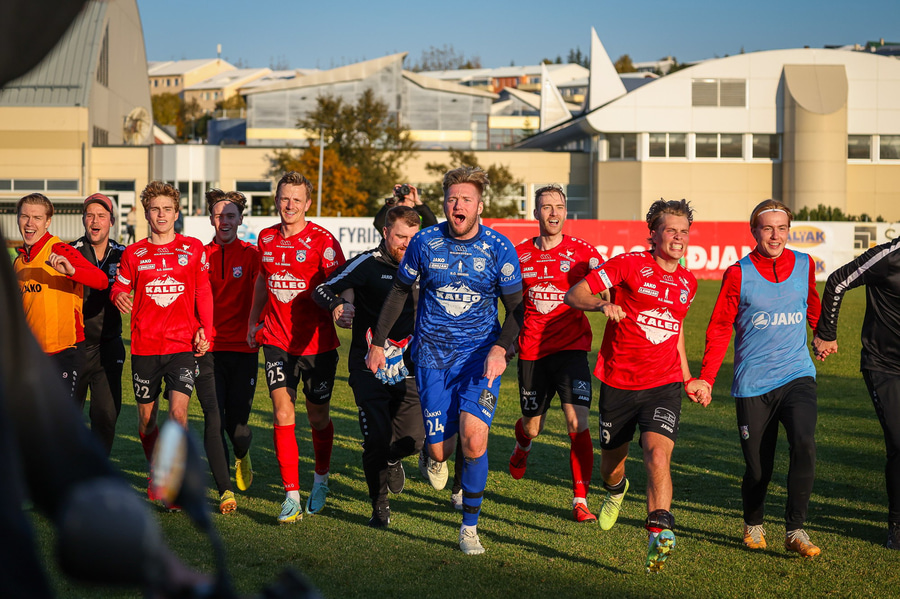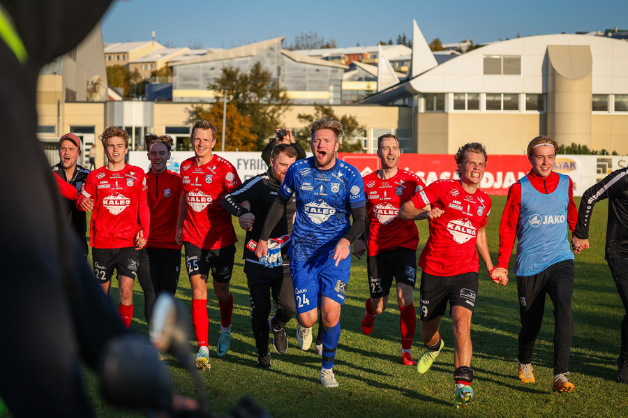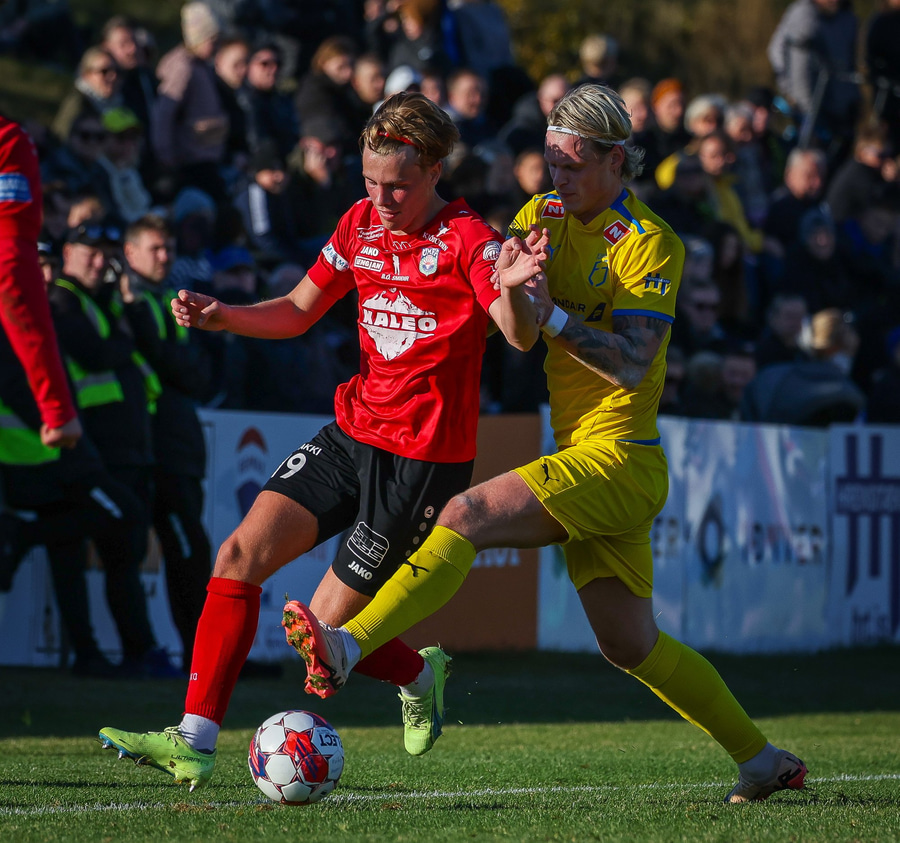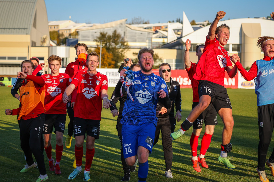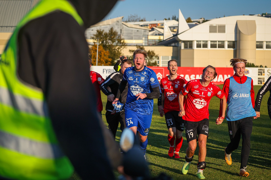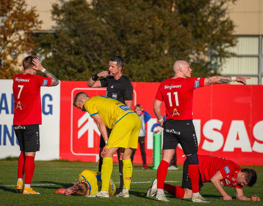 Bjarni Hafstein brýtur á Bjarti Bjarma, Villi Alvar flautar. Boltinn berst á Dag Austmann sem neglir boltanum í liggjandi Bjart eftir flautið.