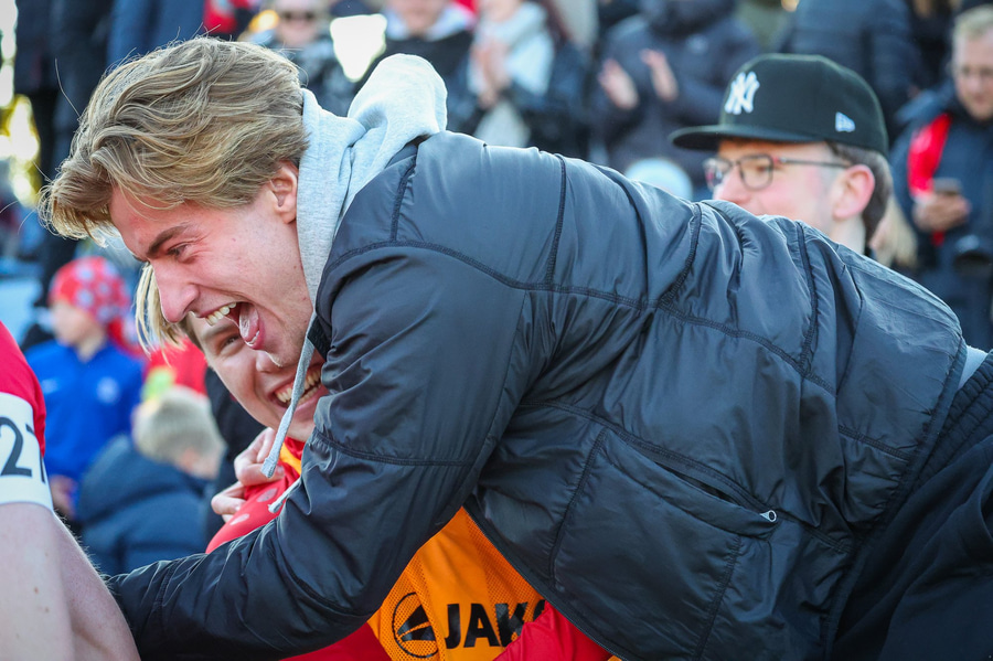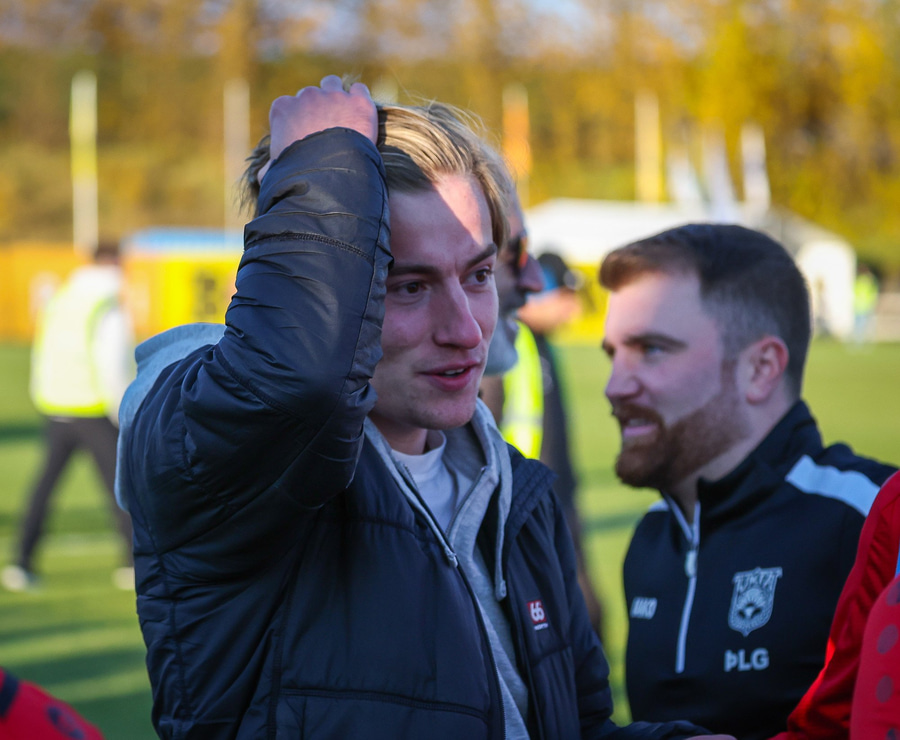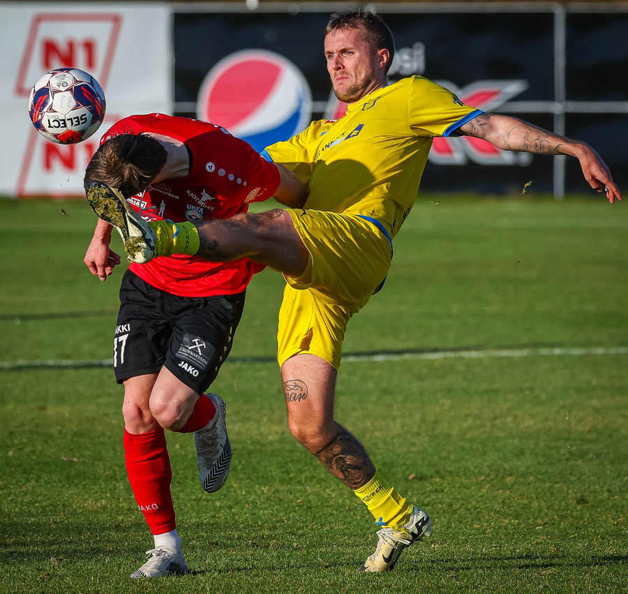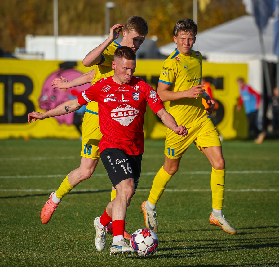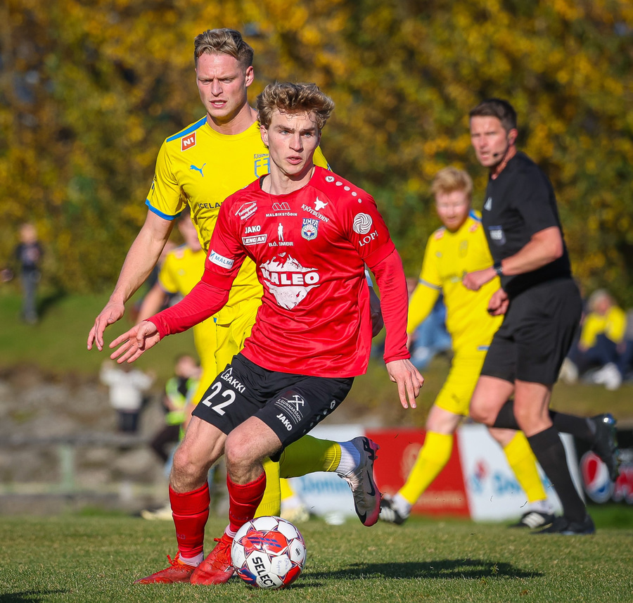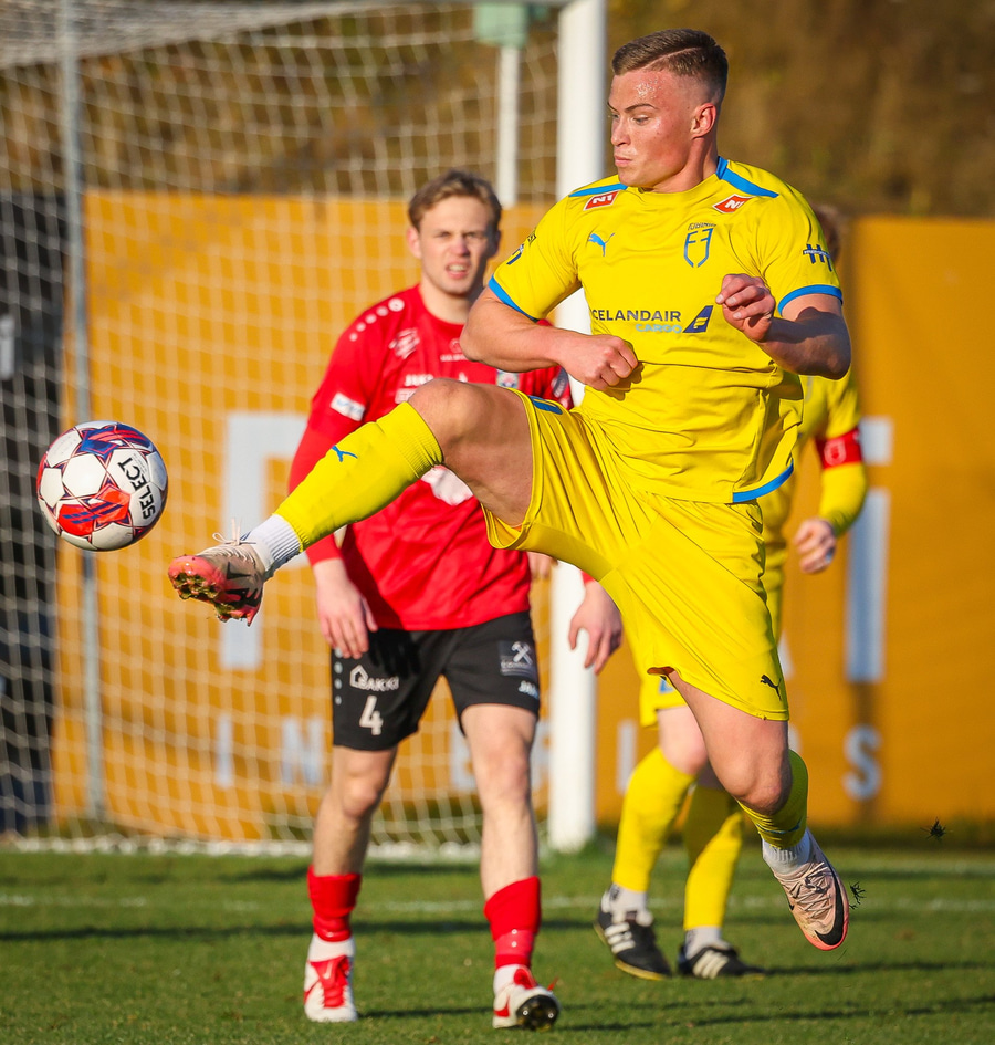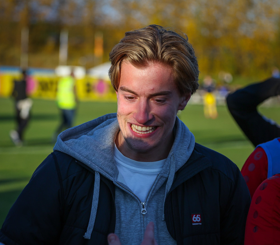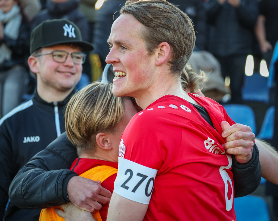 Bjarni Hafstein brýtur á Bjarti Bjarma, Villi Alvar flautar. Boltinn berst á Dag Austmann sem neglir boltanum í liggjandi Bjart eftir flautið.