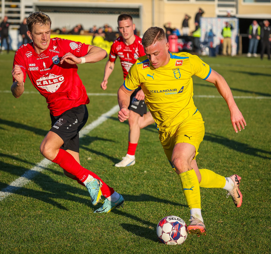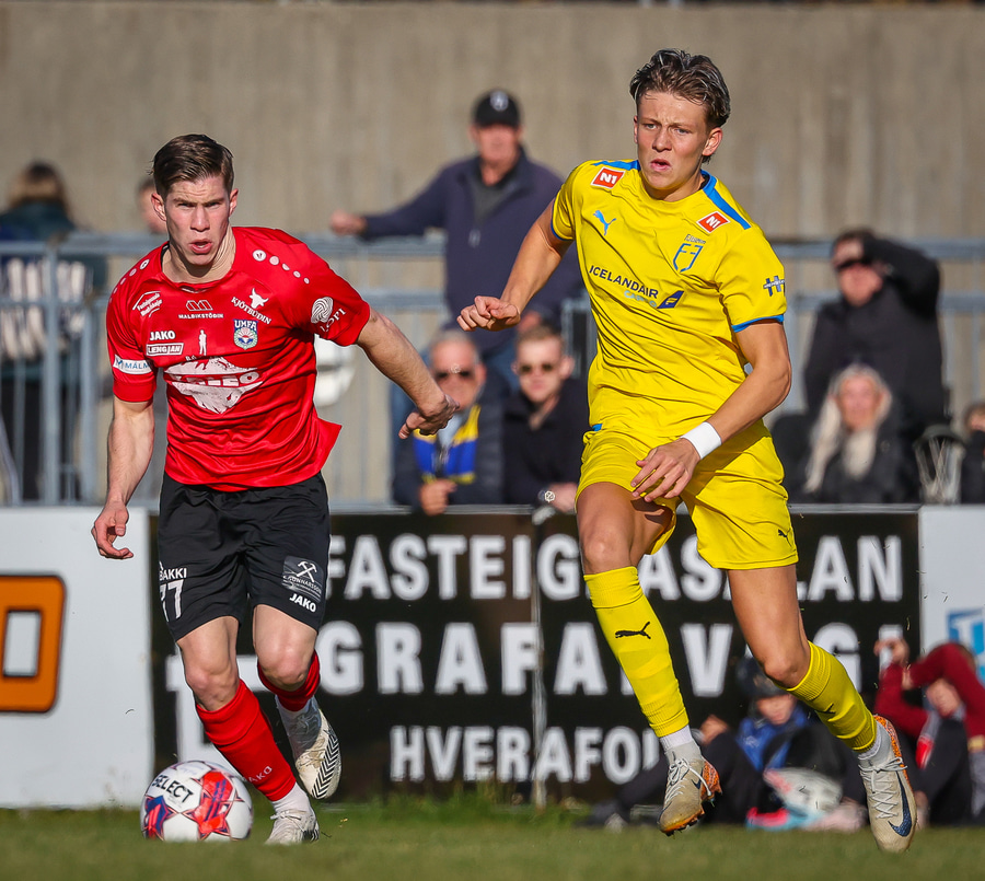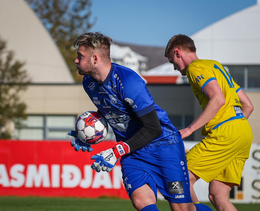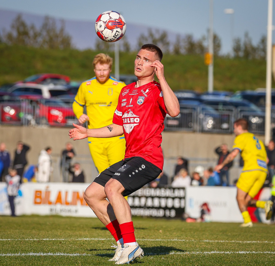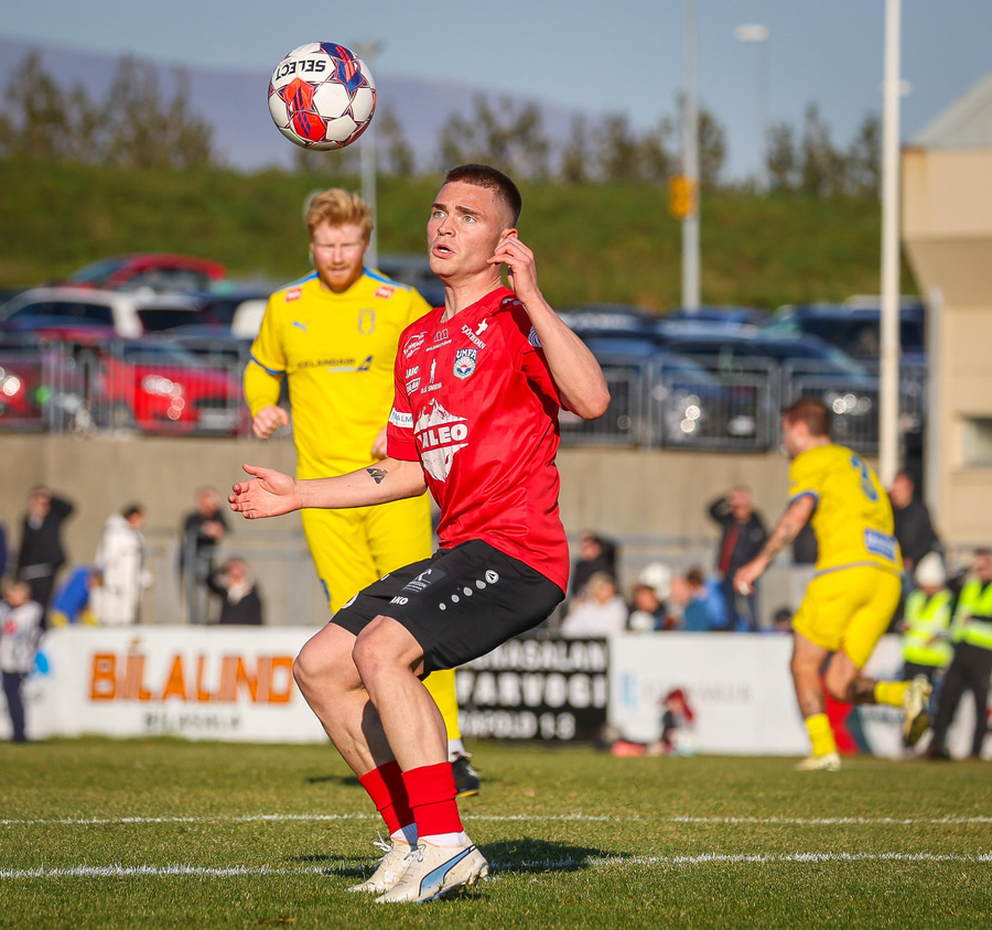 Sigurvin Reynisson með frábæra tilraun frá um 30 metrum en boltinn fer rétt framhjá marki gestanna. Jökull illa staðsettur í marki gestanna og hefði ekki náð til boltans.