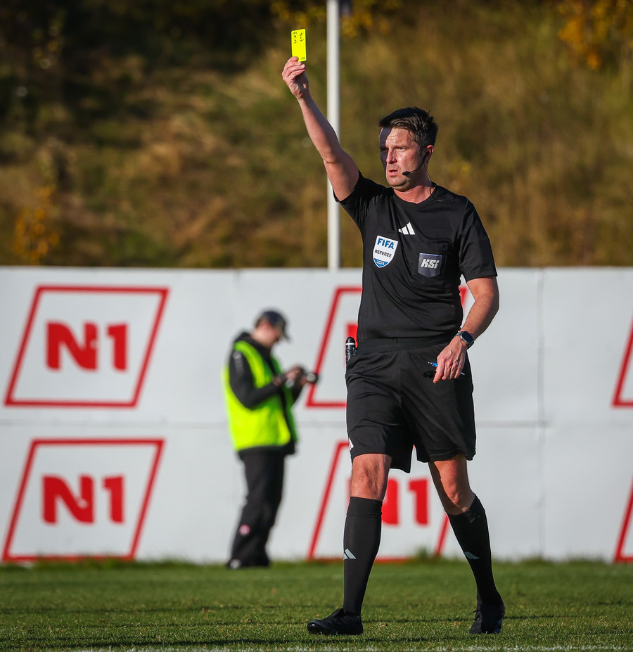 Daníel að næla sér í áttunda spjald tímabilsins eftir harkalega tæklingu.