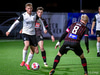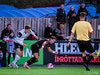 Helgi fær sendingu í gegn og keyrir af stað áður en hann lætur vaða einn á móti Daða sem ver mjög vel.