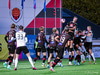 Heimamenn leika í svörtum treyjum, svörtum stuttbuxum og svörtum sokkum.