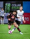 Daði Berg tekur frábæra blindandi hælsendingu í gegn á Djuric sem er kominn einn gegn Daða en Daði ver mjög vel.