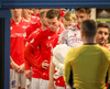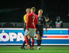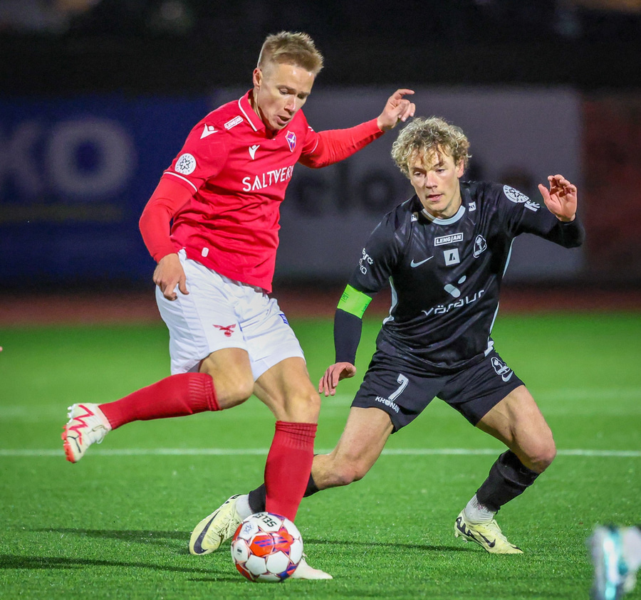 Valsmenn leika í sínum hefðbundnu rauðu treyjum en Breiðablik klæðast svörtum treyjum, ekki veit ég hvers vegna.
