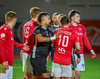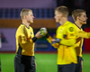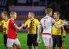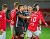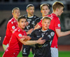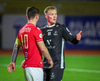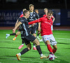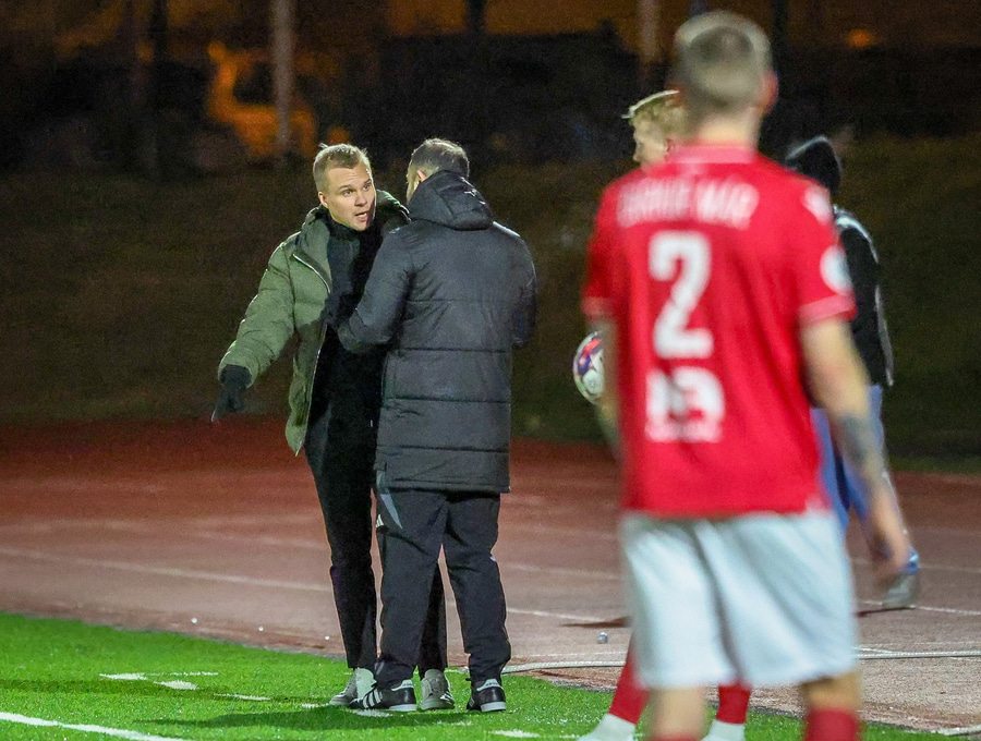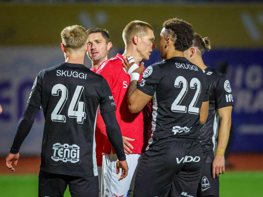 Aron Jó fagnar svo beint í andlitið á Arnóri Gauta sem ýtir við honum og úr verður minniháttar rifrildi.