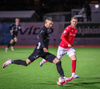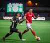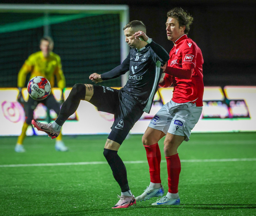 Viktor Örn með lélegan skalla sem Tryggvi kemst í. Tryggvi kemst svo framhjá Arnóri Gauta og sleppur einn í gegn og vippar boltanum snyrtilega framhjá Antoni Ara og í netið, frábærlega gert hjá Tryggva!
