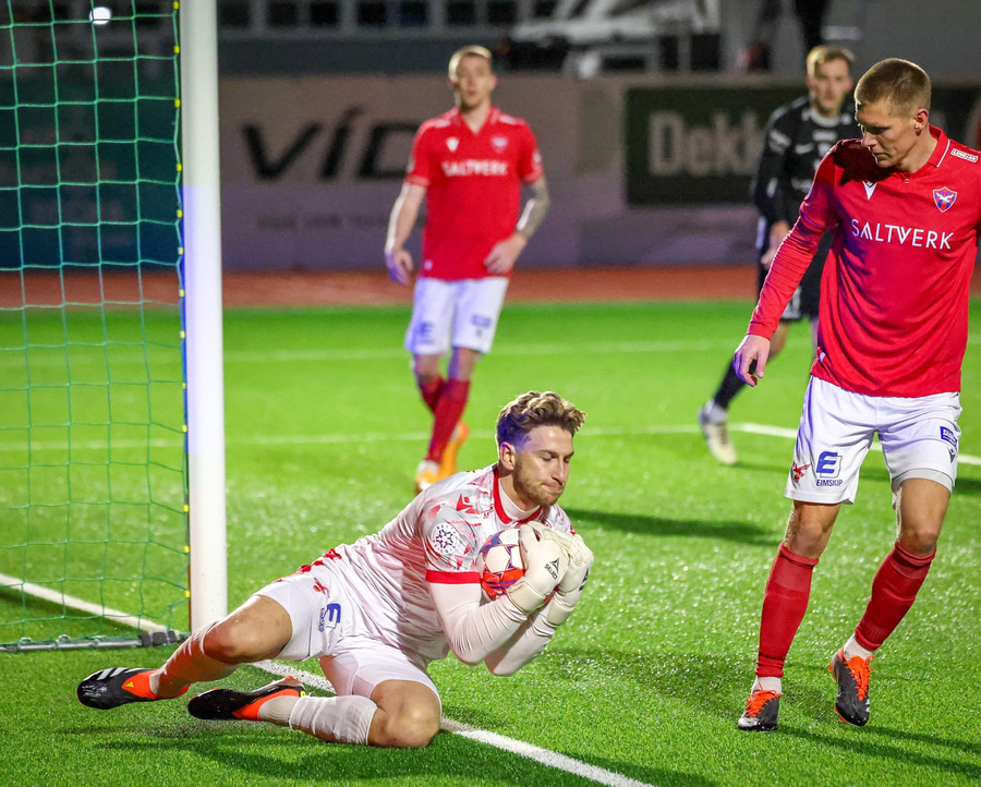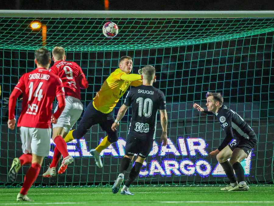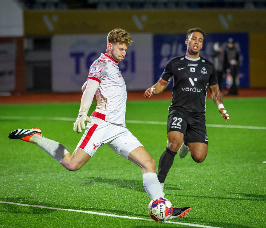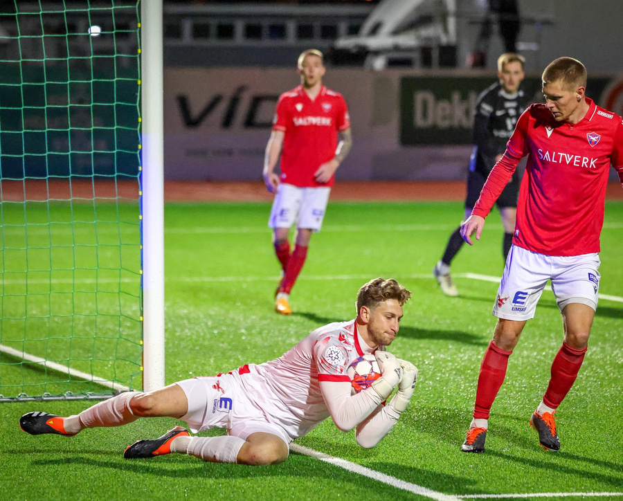 Ísak Snær með frábæran skalla í hornið en Frederik með stórbrotna vörslu.
